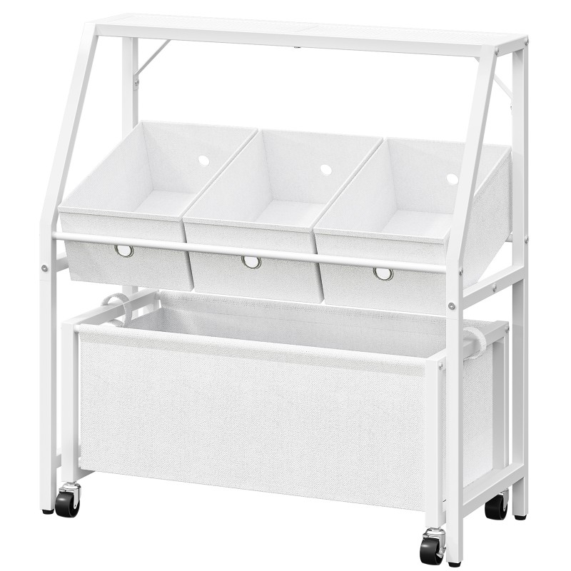 Organizator przechowywania zabawek dla dzieci, magazyn zabawek dla maluchów z kołami, z zabawkami półka z magazynami z 3 Pojemnik do przechowywania, do salonu, żłobek, pokój zabaw, sypialnia, biały