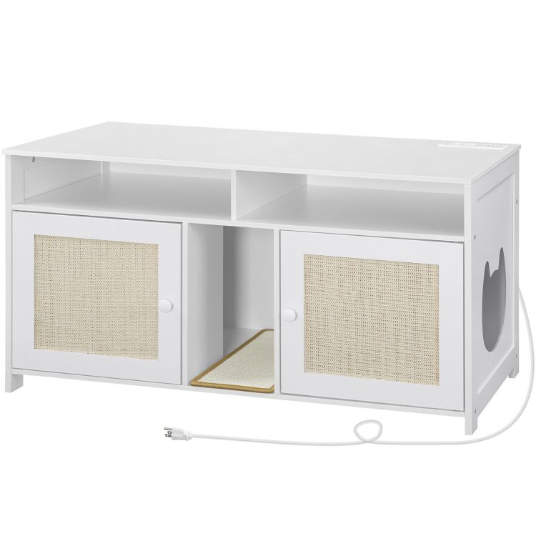 Obudowa białej kuwety dla 2 Koty, Ukryte meble do kuwety z ładowarką, Duże meble do kuwety dla kota z przestrzenią do przechowywania, Drewniany kot z drapaniem