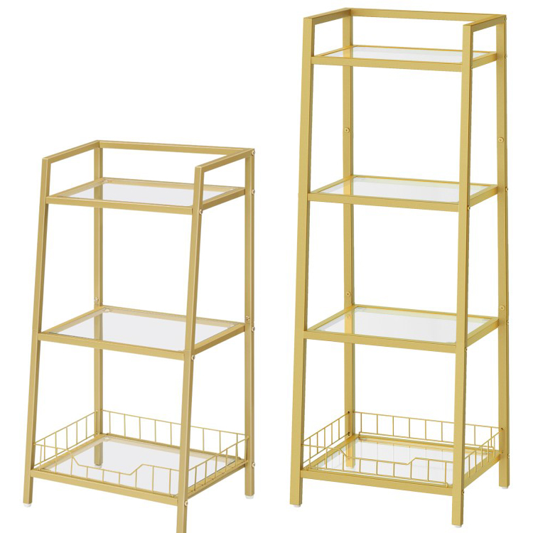 corner shelf, 4-tier standing shelf unit, freestanding glass bathroom shelf, space saving, modern style, for bathroom, living room, bedroom, study room, silver
