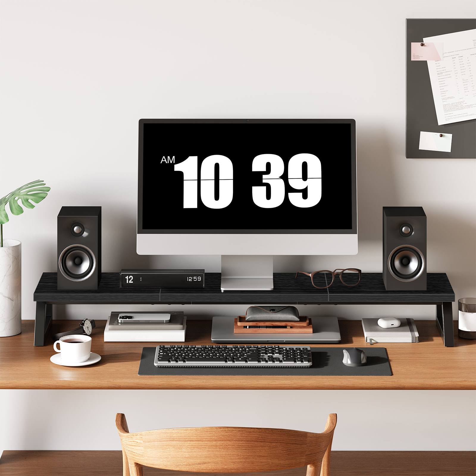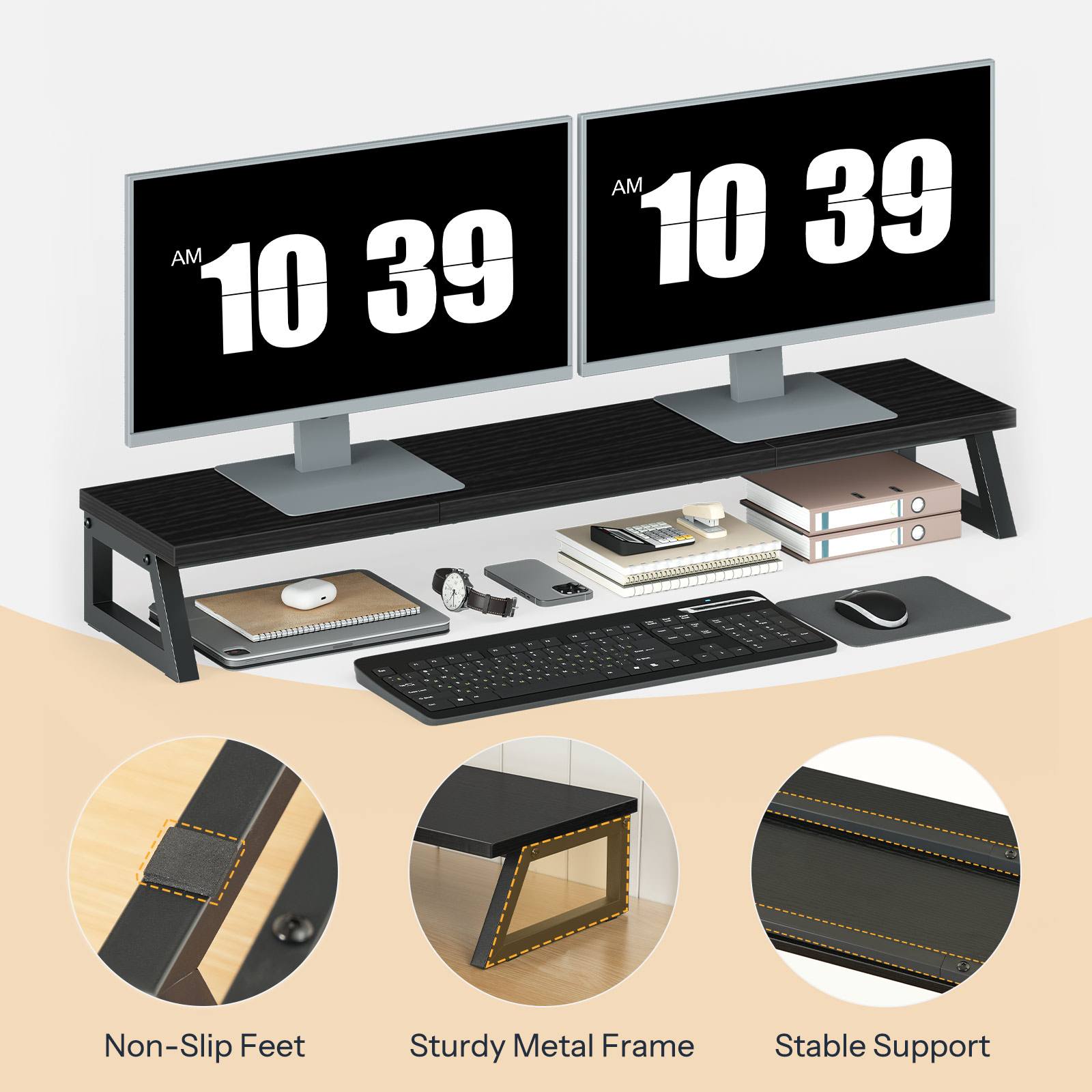 39-Inch Dual Monitor Stand Riser, Heavy-Duty Monitor Elevation Shelf for 2 Monitors (Up to 27 Inches Each), Ergonomic Desk Organizer for Office Workspace, Black