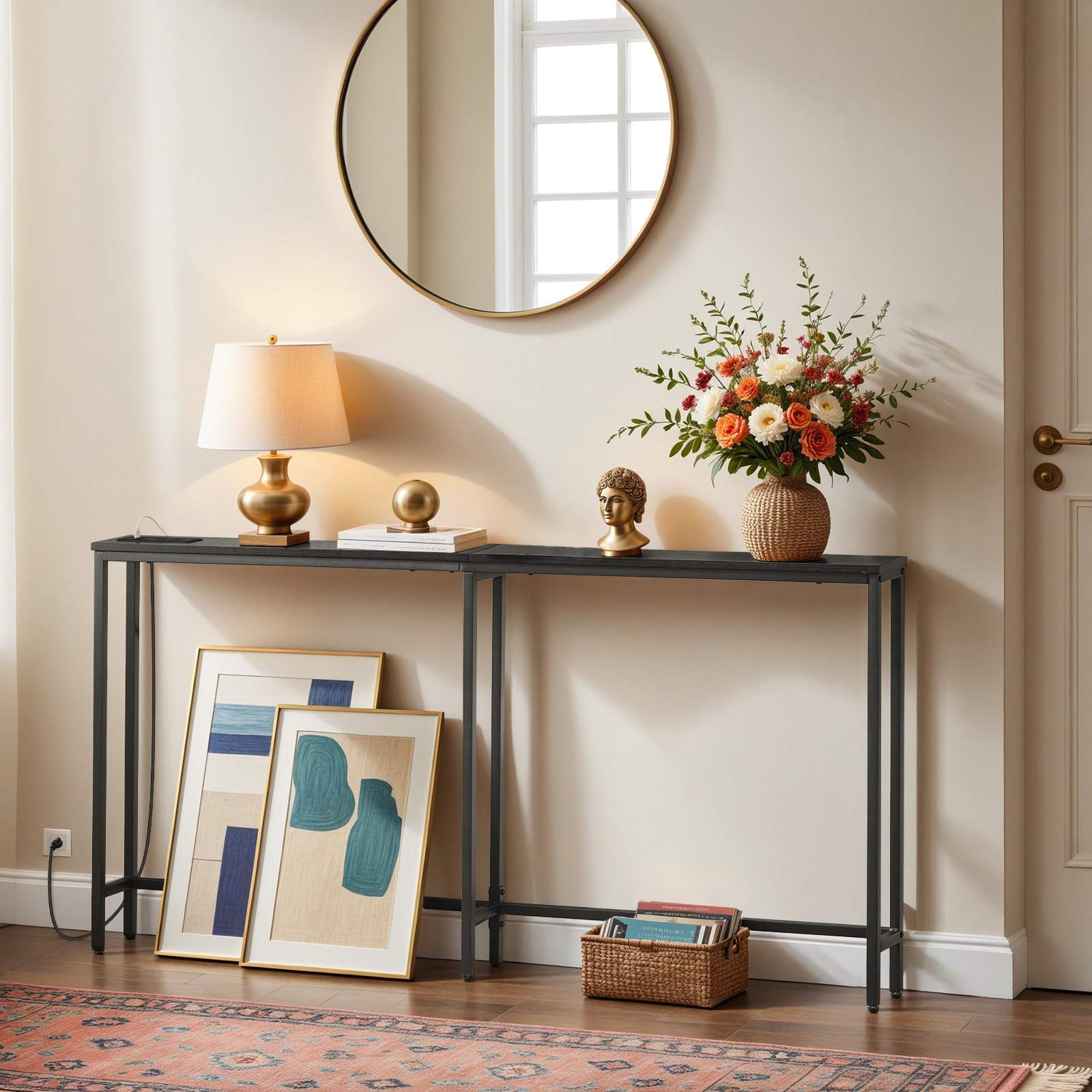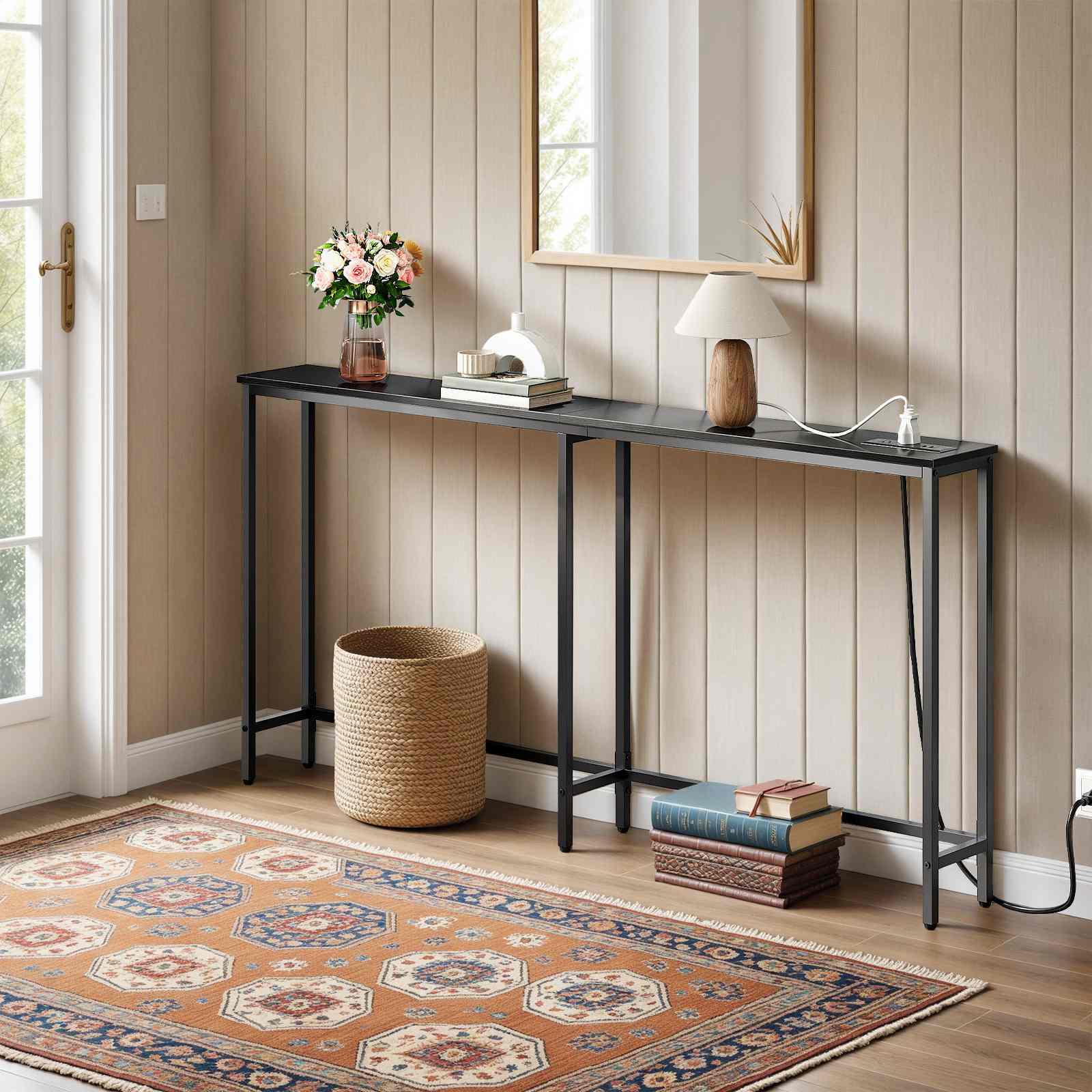 Multi-Functional Versatility: This narrow furniture piece serves multiple purposes, including as a console table, sofa table, entryway table, and nightstand. Adopting a retro-elegant design aesthetic, it is compatible with diverse spaces such as living rooms, bedrooms, dining rooms, studies, foyers, offices, and hallways.