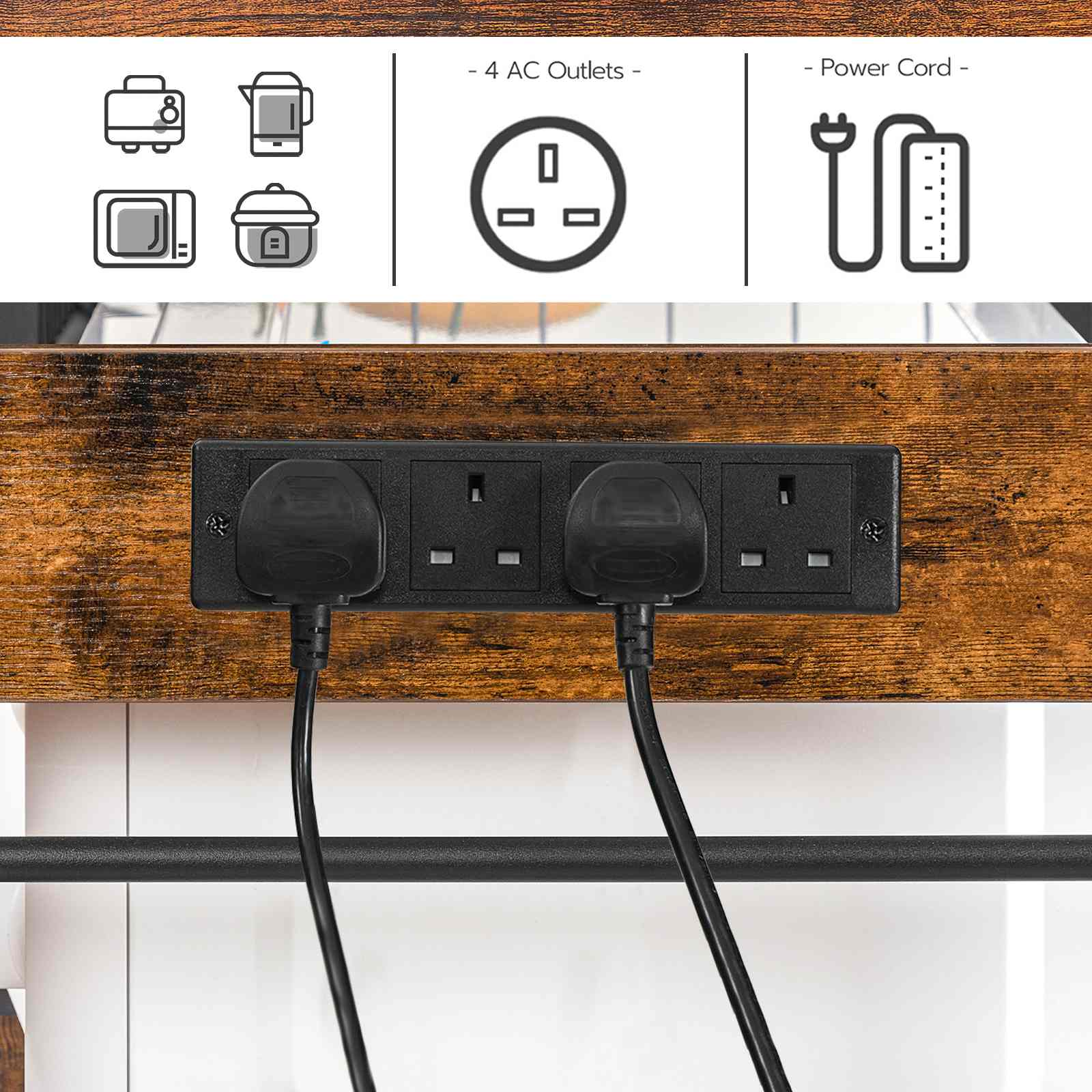 4 AC Power Outlets: To address the inconvenience of simultaneous electrical appliance usage, this kitchen bakers rack is equipped with four 3-prong AC power outlets, effectively meeting the power supply needs of multiple appliances operating concurrently.