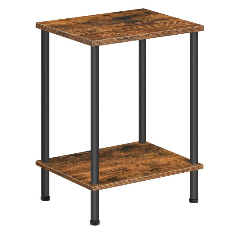 end table, small side table, nightstand with 2-layer storage shelves, sofa table for small spaces, living room, bedroom, stable frame, easy assembly, rustic brown