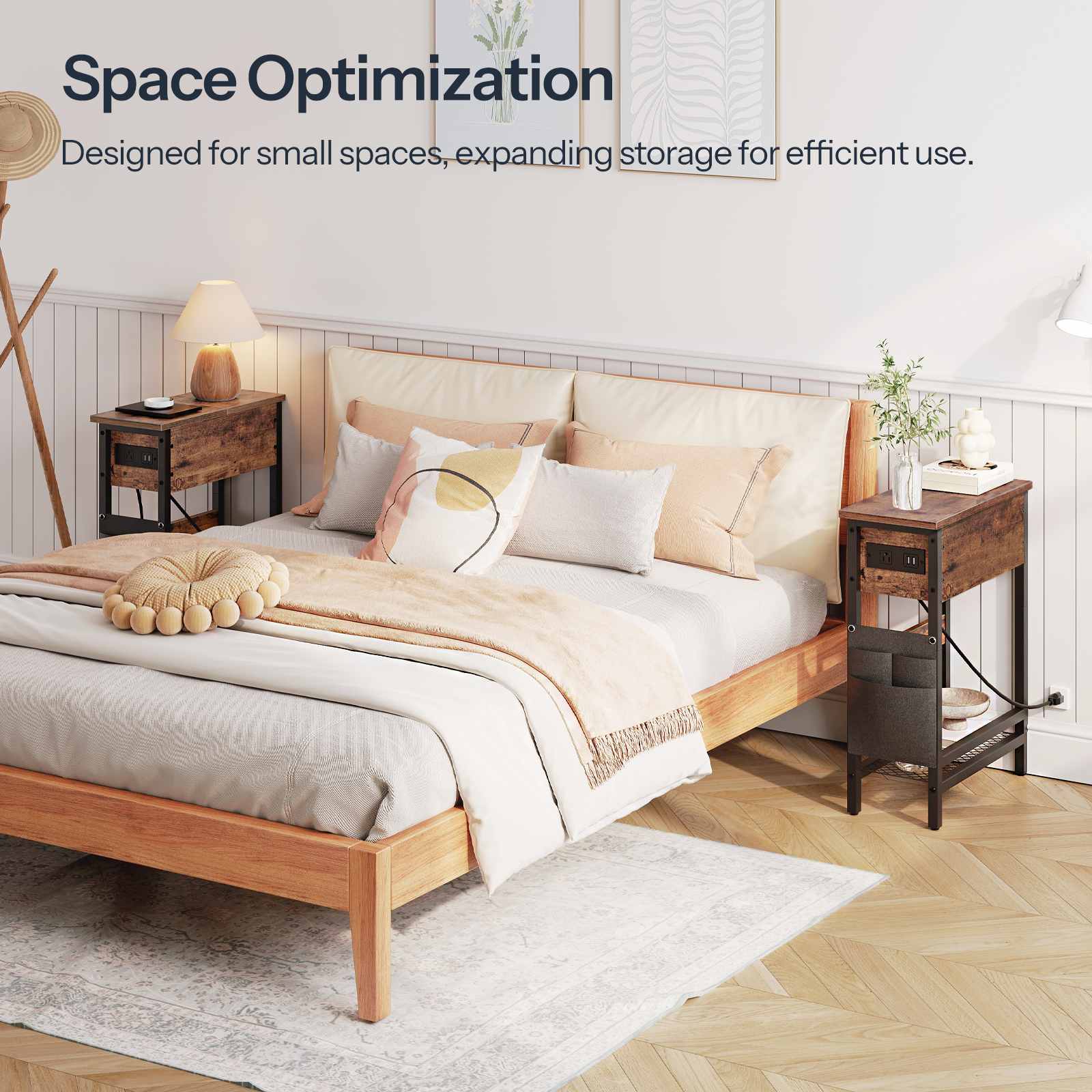 No space for snacks, remote controls, or magazines in the living room? Need to charge your phone before bedtime? The HOOBRO side table with a charging station addresses your concerns. This rustic side table with a non-woven fabric bag not only provides private storage but also an open space to keep everything at your fingertips.