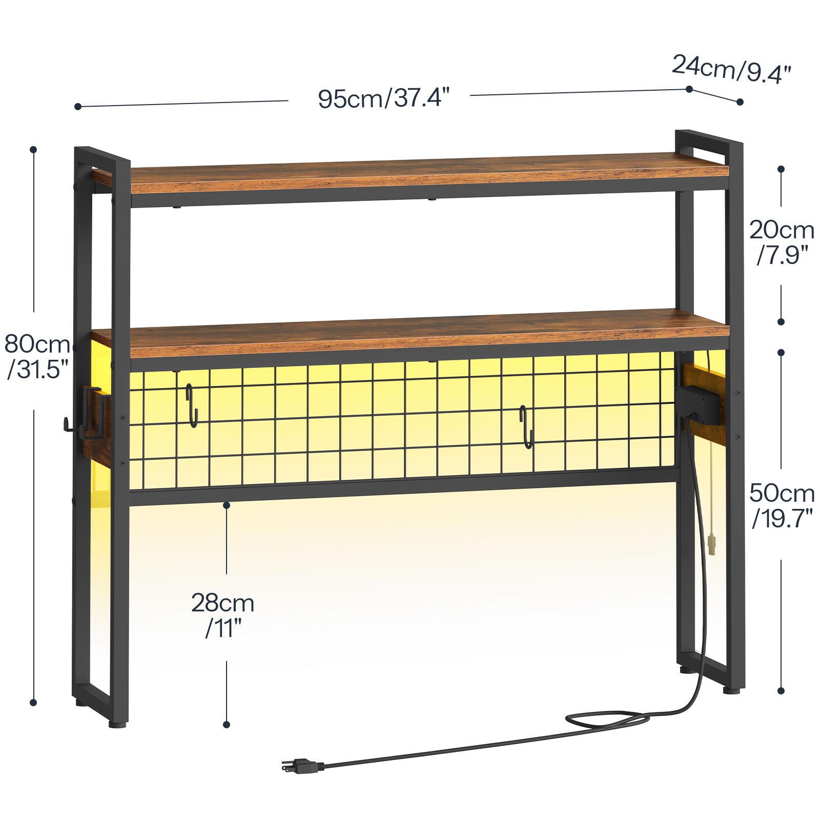 Desktop Bookcase, 2-Tier Desktop Organizer, Wooden Office Storage Rack with Power Outlets, Display Shelf with LED Light Strip, Desk Hutch for Office Use, Rustic Brown