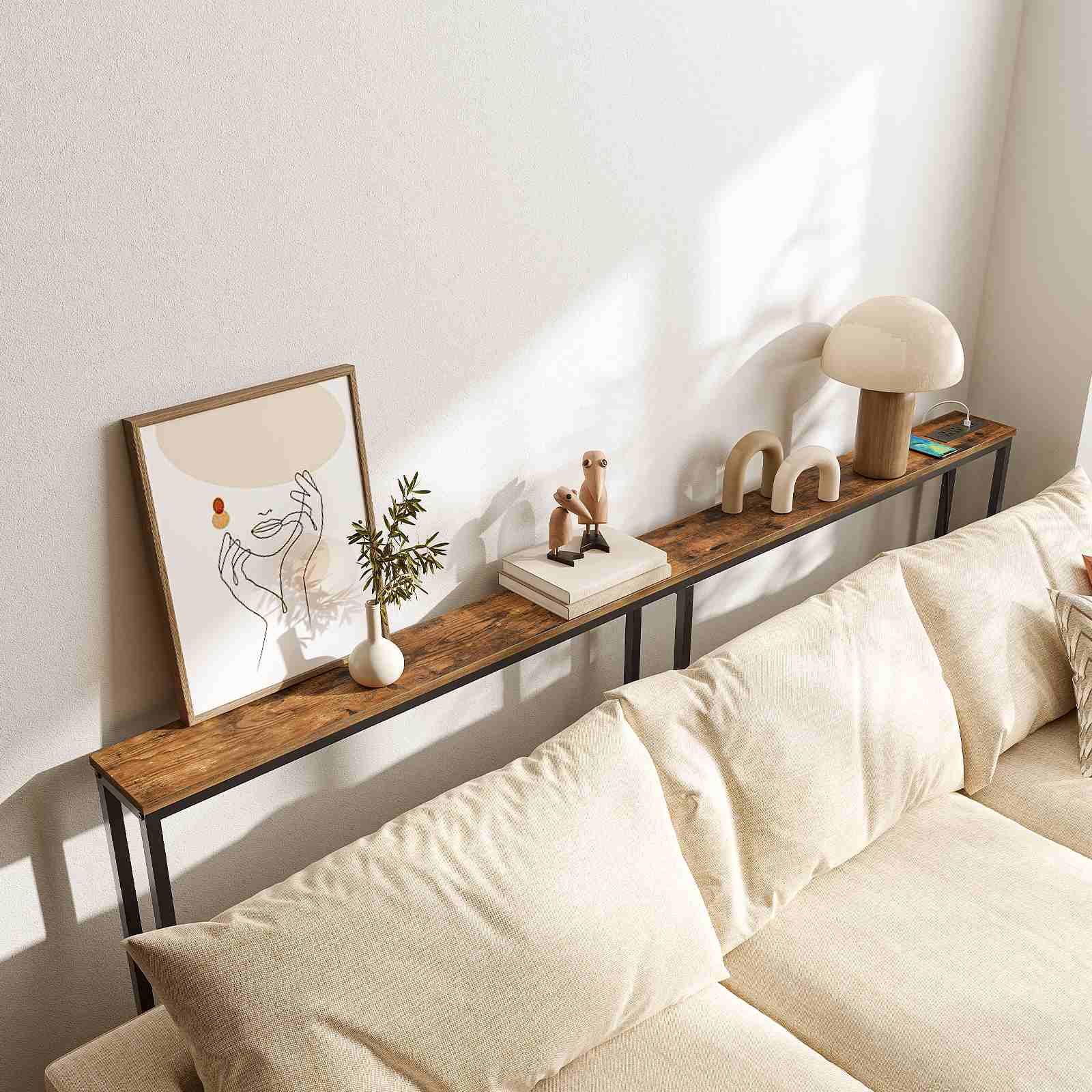 78.7 Inch Narrow Console Table with Integrated Charging Station, 5.9-Inch Depth Sofa Table Equipped with 2 Power Outlets and USB Ports, Long Entryway Table for Hallway, Living Room, Rustic Brown Finish