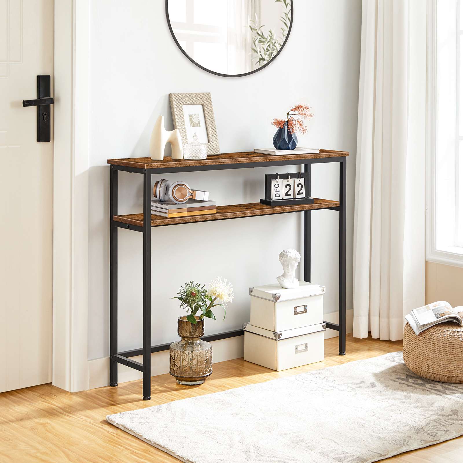 Industrial Console Table with Adjustable Shelf, Slim 2-Tier Side Table with Storage, Suitable for Living Room, Office and Hallway