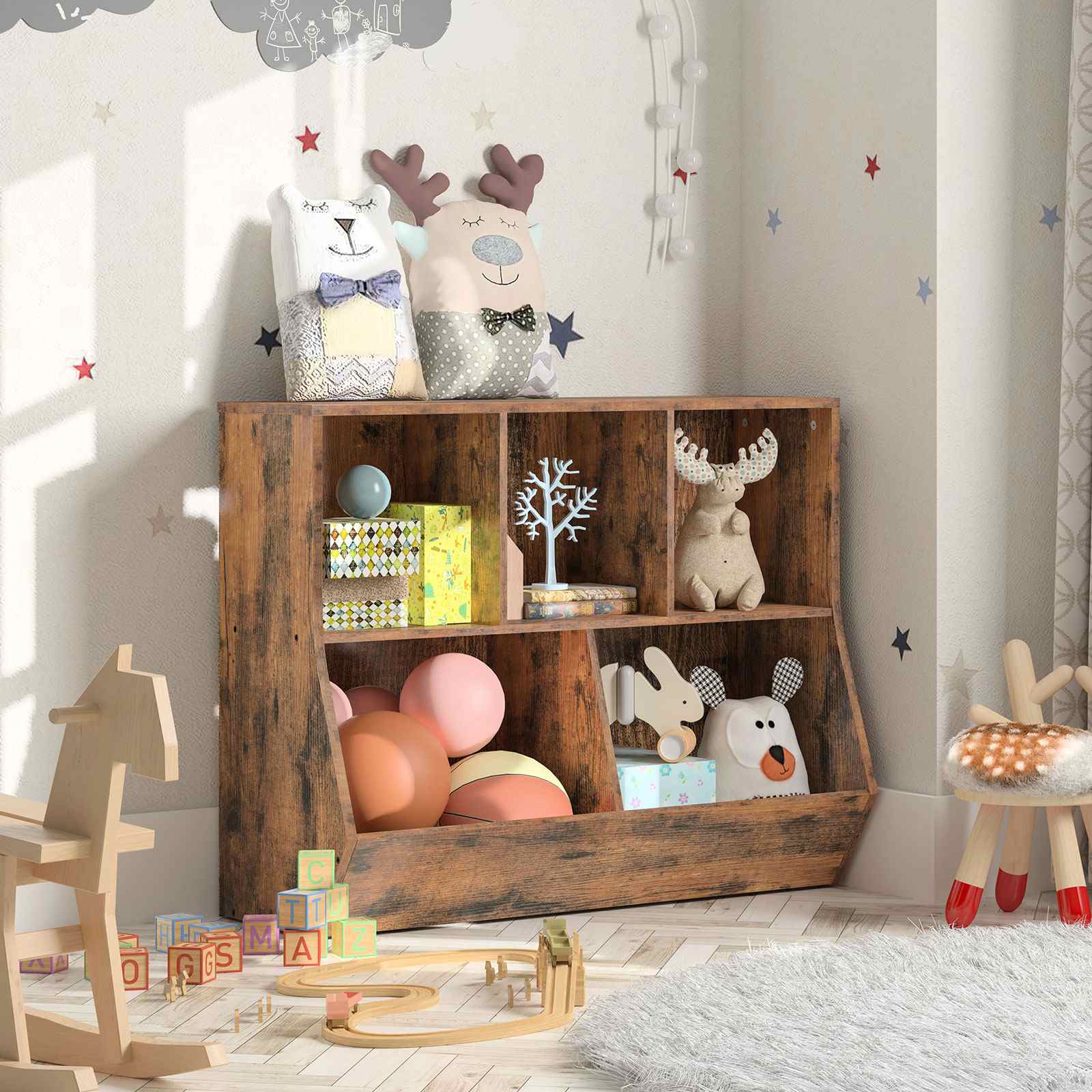 Multifunctional Storage Function: This toy organizing cubby is equipped with 3 open compartments, which can be used to store children’s favorite books and notebooks. Additionally, 2 tiltable storage boxes provide additional storage space for items such as building blocks, small toy trucks and dolls.