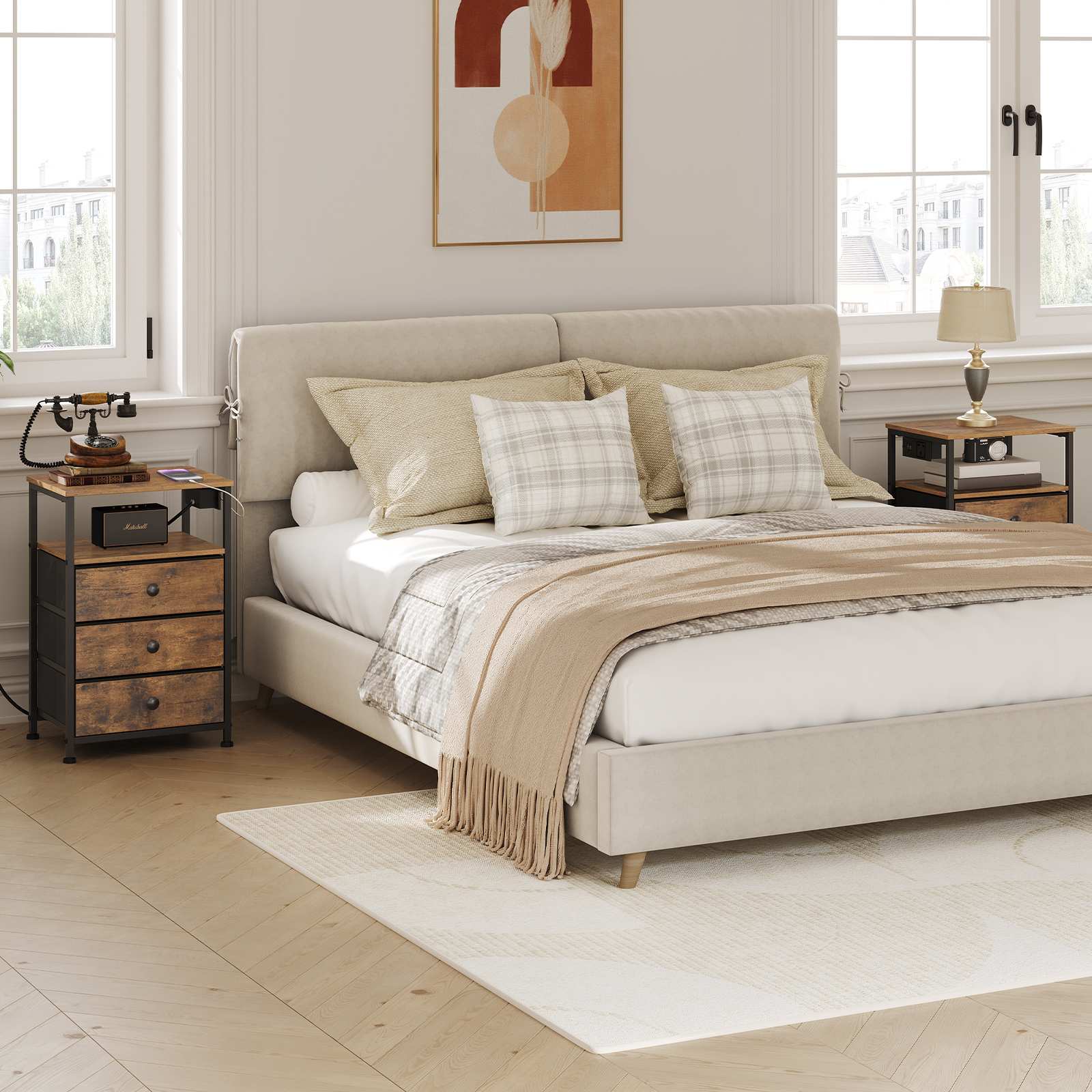 Stable Structure with Floor Protection: This end table with power functionality is constructed from high-quality panels, a metal frame and non-woven fabric drawers. Its robust structure ensures excellent stability and long-term durability, while 4 adjustable feet enhance overall balance and prevent scratches on floor surfaces.