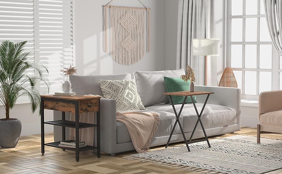 - brand new industrial charm: premium wooden board in rustic brown brings some retro feelings to your home, together with the black metal frame, making the side table send out the charm of the outstanding industrial style