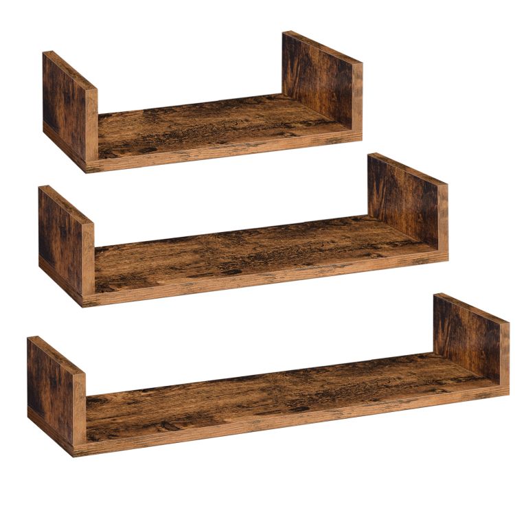 - rustic u-shaped shelves: if you are struggling with a cluttered room, a floating set of rustic wall-mounted shelf is an ideal solution. these floating shelves feature a simple and rustic design. made of particleboard, it is stable and durable