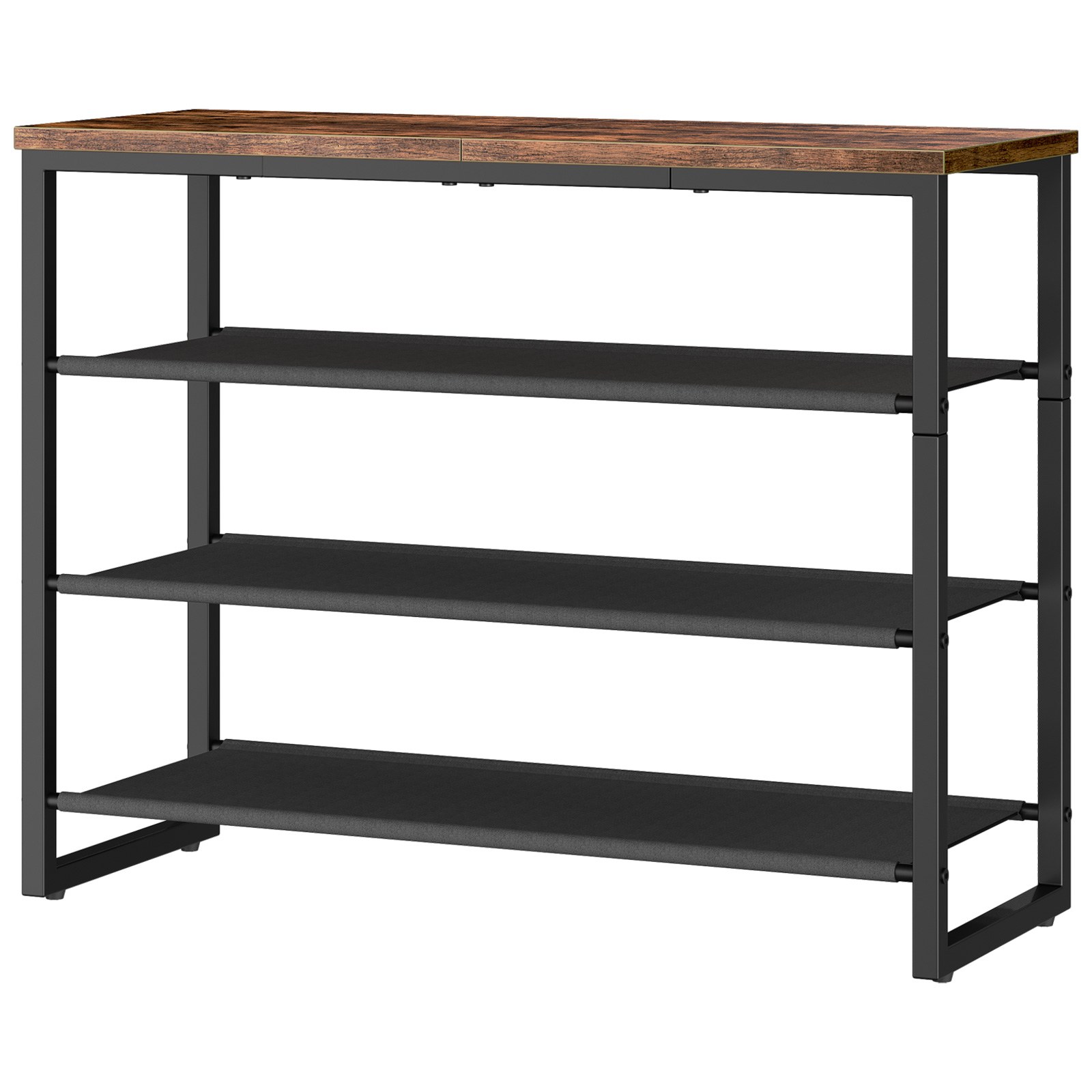4-Tier Shoe Rack, Multi-Functional Shoe Storage Organizer with 3 Oxford Fabric Shelves and Top Panel, Capacity for 12-16 Pairs of Shoes, Suitable for Entryway, Closet, Industrial Style, Rustic Brown