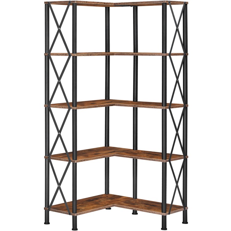 HOOBRO Corner Bookshelf, 5-Tier L-Shaped Bookcase, Industrial Open Display Shelf Tall Storage Organizer, Vertical Storage Rack, for Living Room, Home Office, Rustic Brown and Black