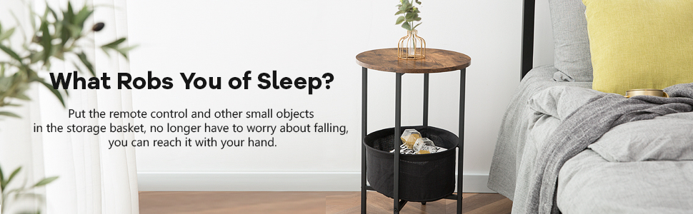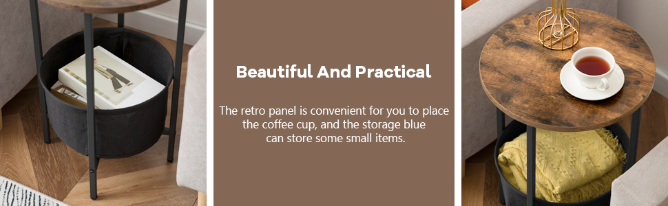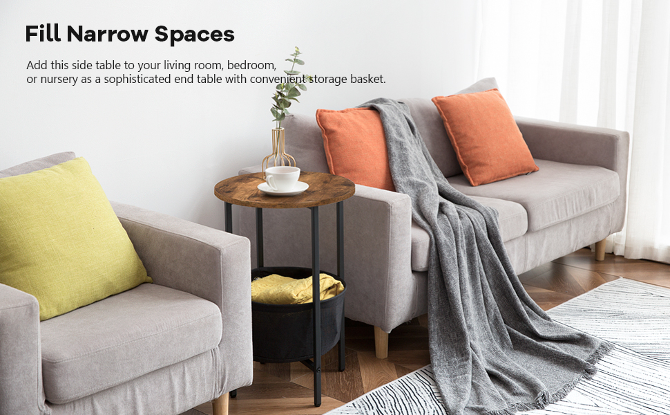 - sufficient space for organization: sized in 40 d x 60.5 cm / 15.7″d x 23.8″h, the end table can hold snacks and coffee, and the washable and removable cotton basket is spacious and convenient for storing books, toys out of sight. no trouble in finding the sewing box and remote control