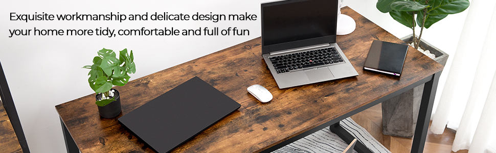 - work from home or in office: heavy duty black frames seamless matches with the appealing wooden board in rustic brown. the simple computer desk will be a right choice that perfectly goes with interior industrial-styled decor and brightens up all day