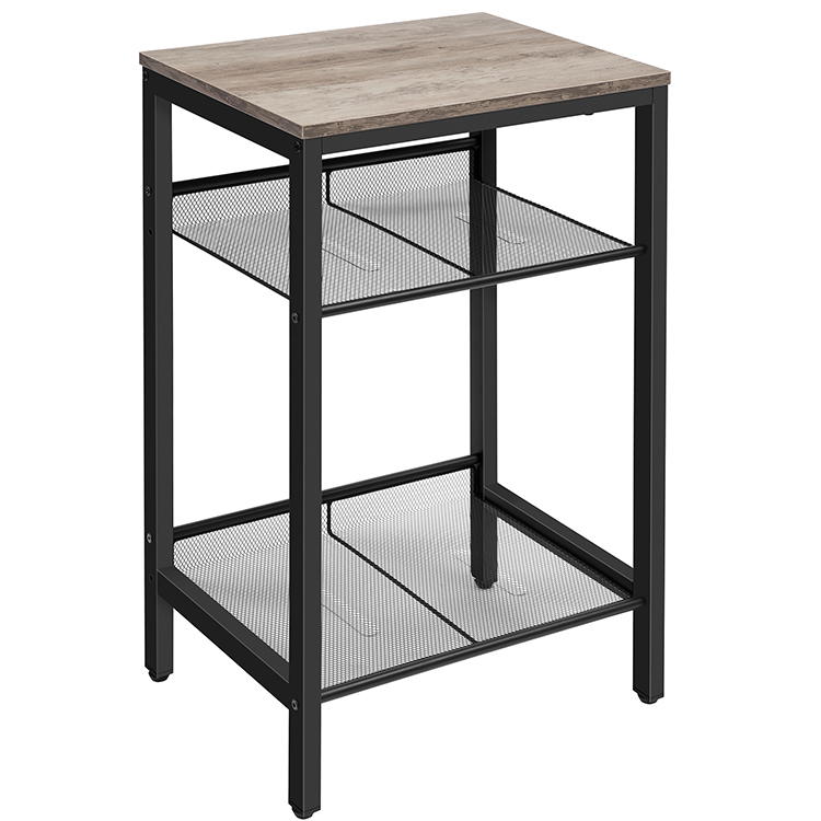Side Table, Industrial End Lamp Table with Adjustable Mesh Shelves, for Office Hallway or Living Room, Wood Look Accent Furniture, Tall and Narrow, Easy Assembly, Greige and Black