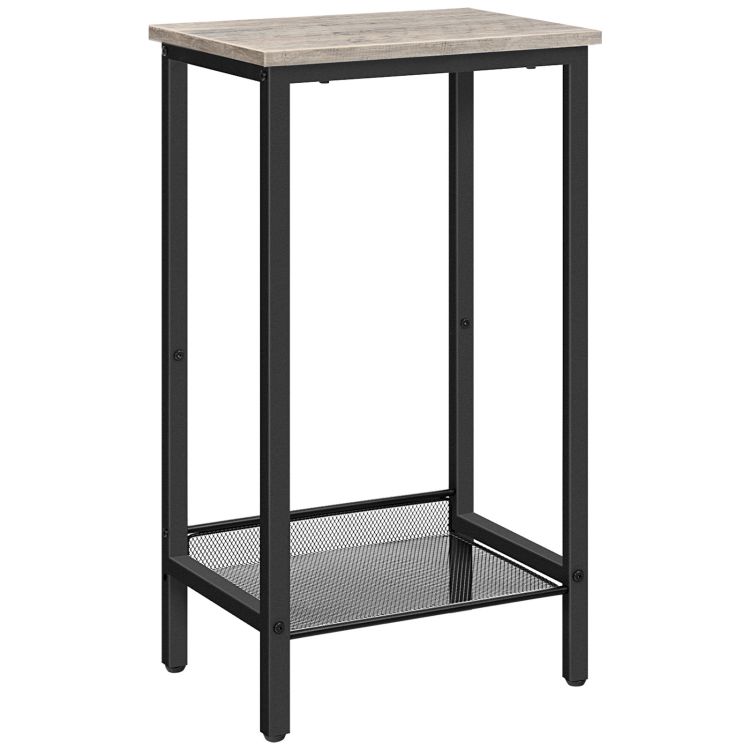 Telephone Table, Side Table High with Adjustable Mesh Shelf, Narrow Bedside Table, Sofa Table, 38 x 28 x 73.5 cm, for Office Hallway, Living Room, Industrial Design, Grey and Black