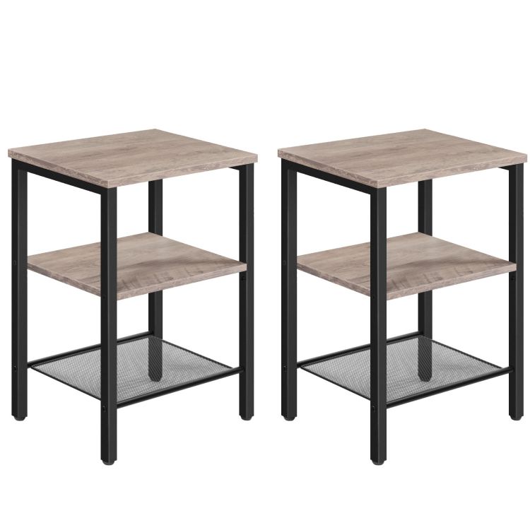 - simple and stylish: this set of 2 side tables are made of industrial black frame and warm grey color panel with stylish mesh elements to create an impressive style combination. it gives an industrial look to any space from the living room to the bedroom, which is the change that you have been waiting for