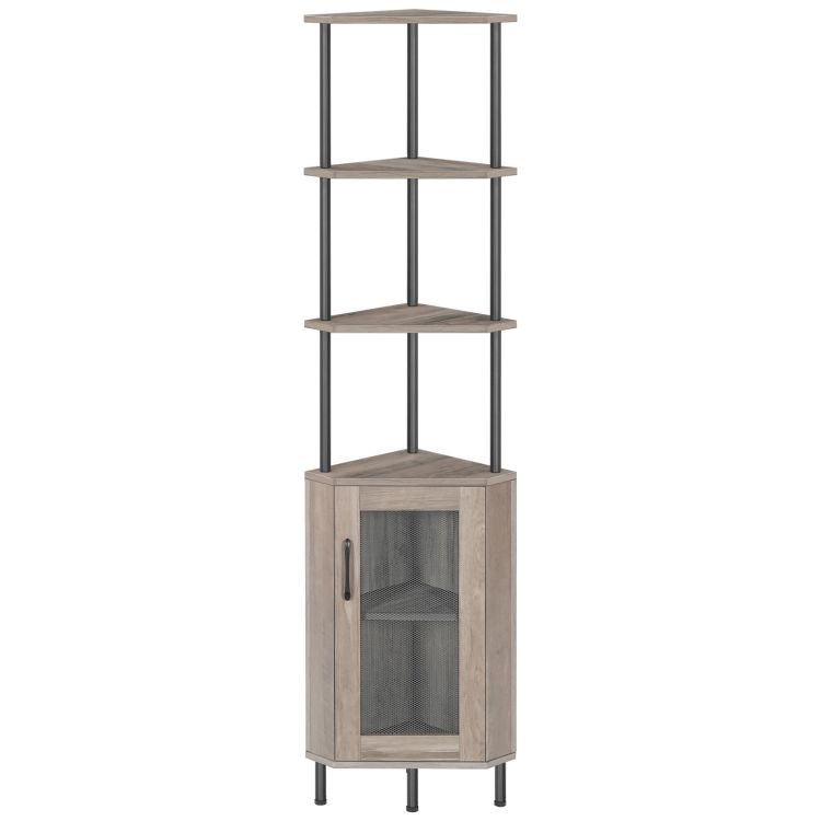 corner shelf stand, 64.8" tall industrial corner cabinet with doors, 5-tier corner bookcase, corner display cabinet plant stand, display shelves rack for living room, grey bg164cj01