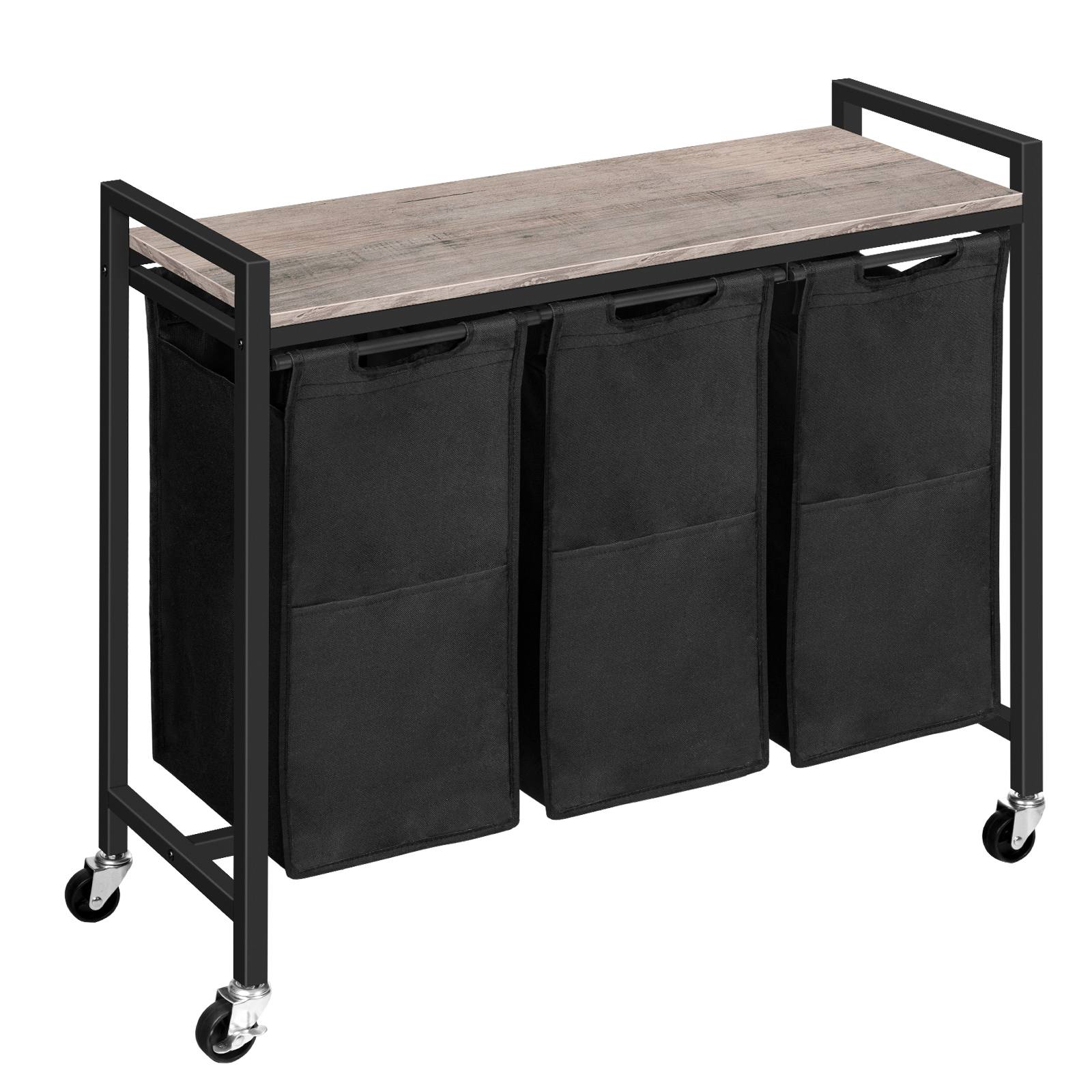 Laundry hamper cartwith top shelf & 3 removable oxford bags & side pockets