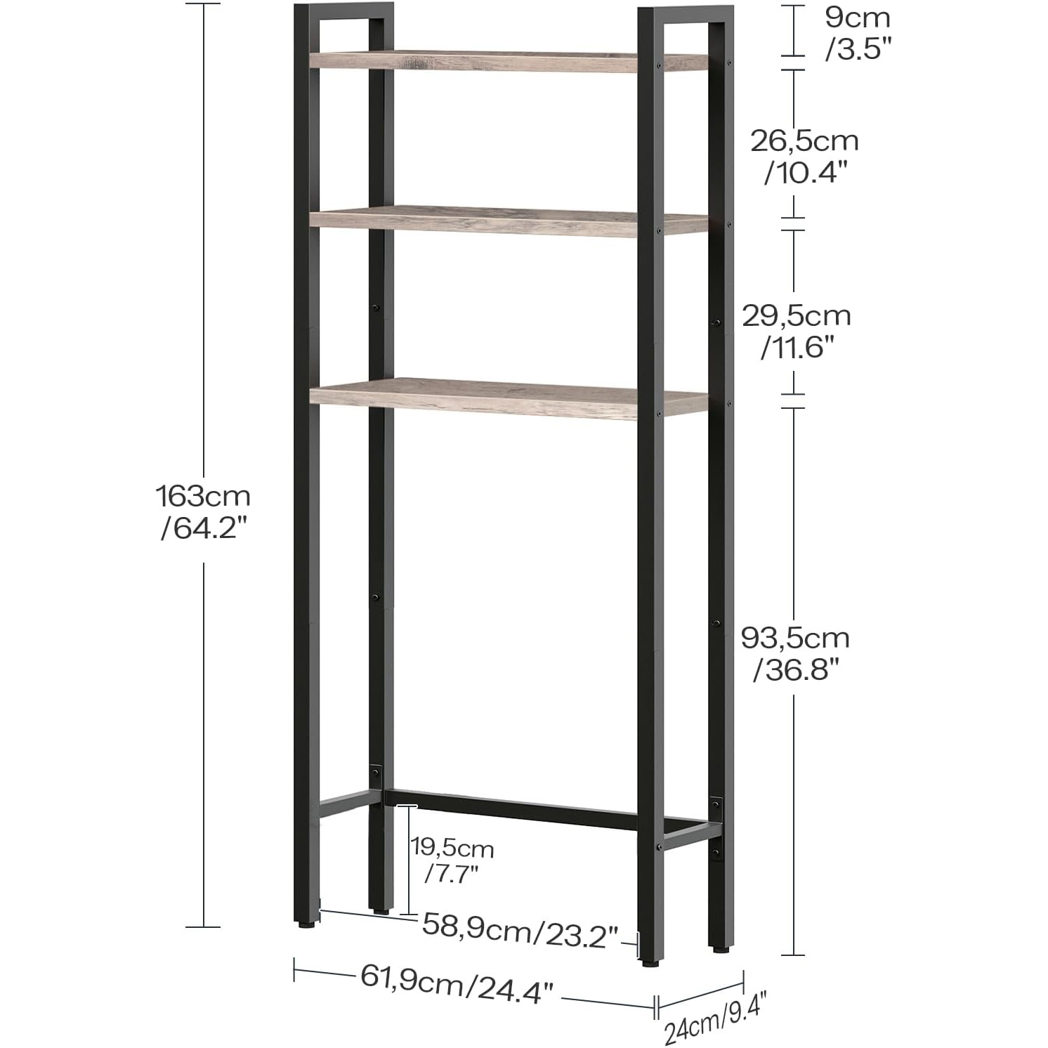 3-Tier Industrial Over-the-Toilet Storage Rack, Grey & Black Multifunctional Bathroom Organizer, Space-Saving Shelving Unit for Bathroom, Easy Assembly