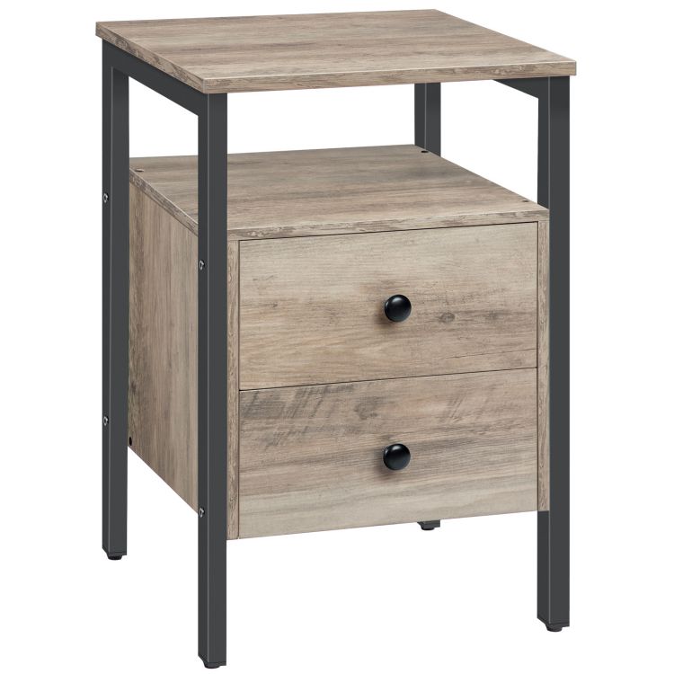 End Table, Side Table, Bedside Table with 2 Drawers and Storage Shelves, Side End Table, Sofa Table for Living Room, Accent Furniture, Easy Assembly, Grey and Black