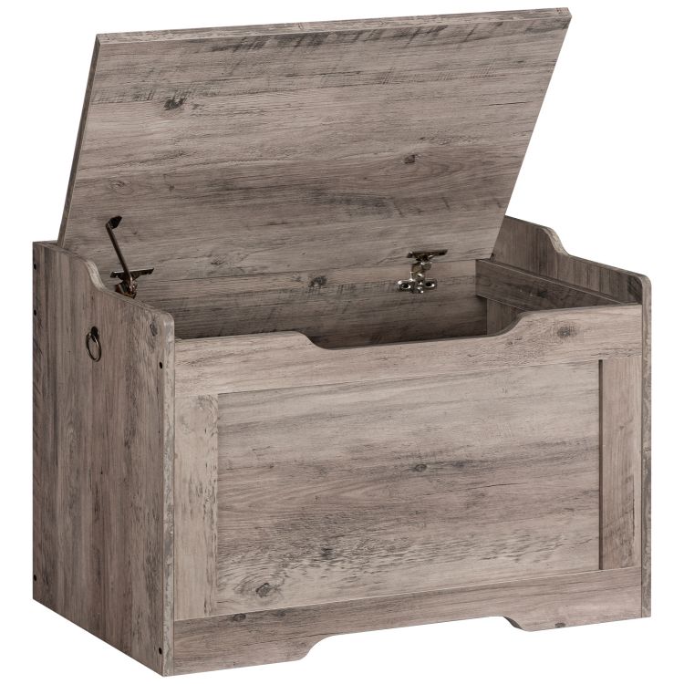 storage chest, storage bench with safety hinge, retro storage organizer, with 60 cm storage trunk, enclosure on top, supports 100 kg, entryway shoe bench, easy assembly, greige bg79cw01