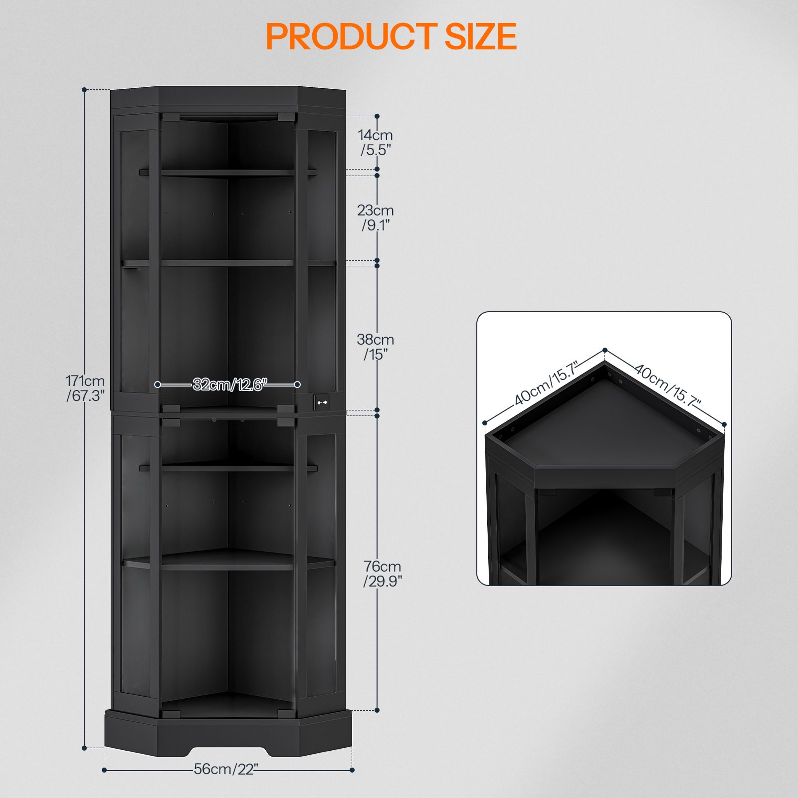 HOOBRO Corner Display Cabinet with Glass Doors & LED Lights
