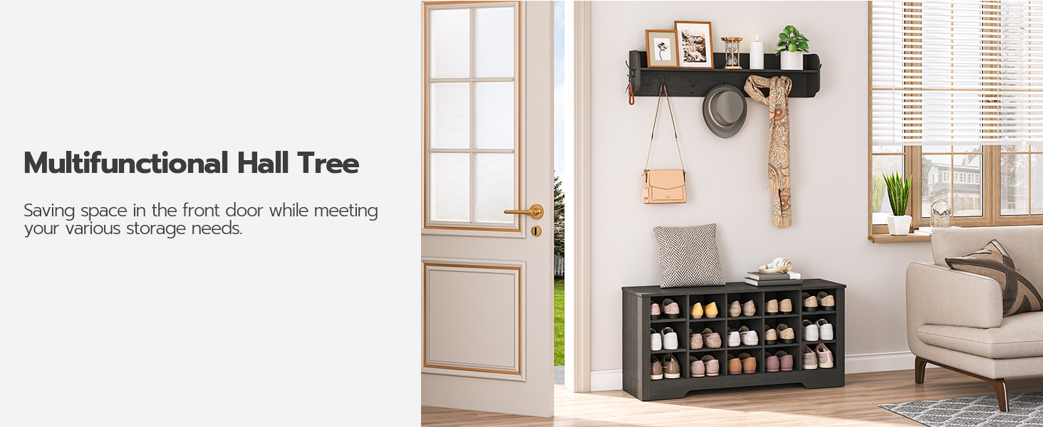 3-in-1 hall tree saves your messy entrance, keeps it tidy.
