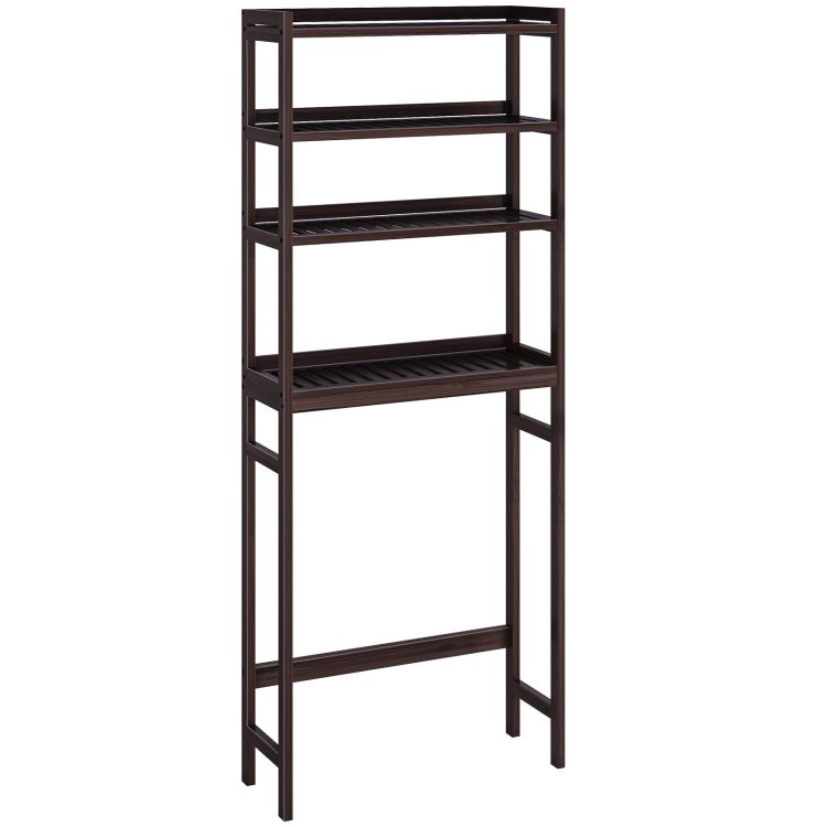 over the toilet storage, 4 tier bamboo over the toilet storage shelf, freestanding over toilet bathroom organizer, simple and retro, for bathroom, laundry, restroom, brown
