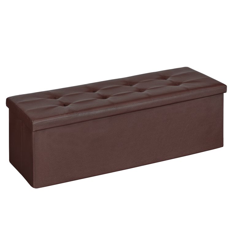 43.3 inchs folding storage ottoman bench, storage chest, footrest, coffee table, padded seat, upholstered top, holds up to 660 lb, for living room, bedroom, entryway, brown