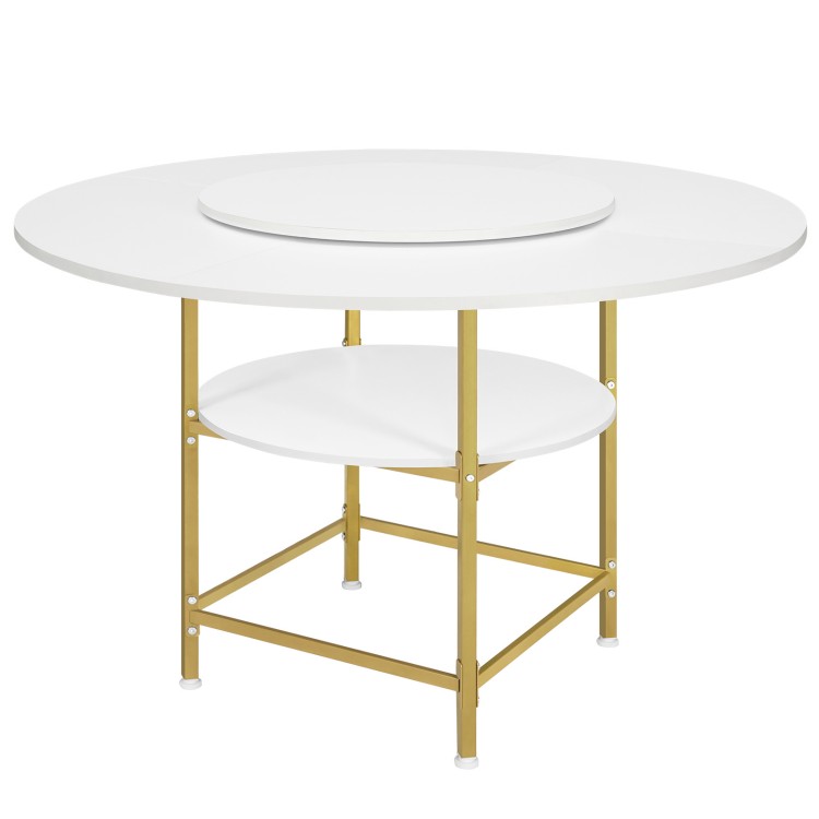 Round Dining Table for 4, Dinner Table with Storage Shelf, 47.2” Dining Room Table, Circle Table, Farmhouse Wood Kitchen Table for Dining Room Living Room, White and Gold