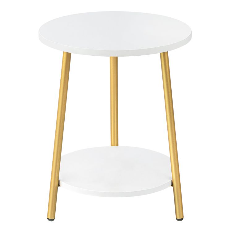- sturdy construction: the 2-tier round side table is constructed with strong gold iron frame and durable engineered wood panels for enhanced stability and long service time