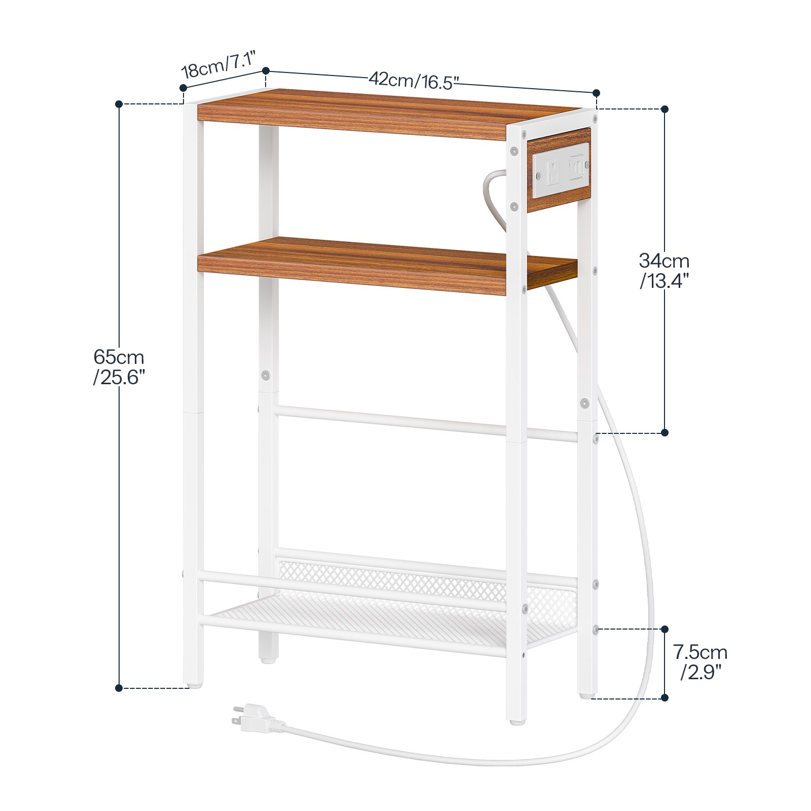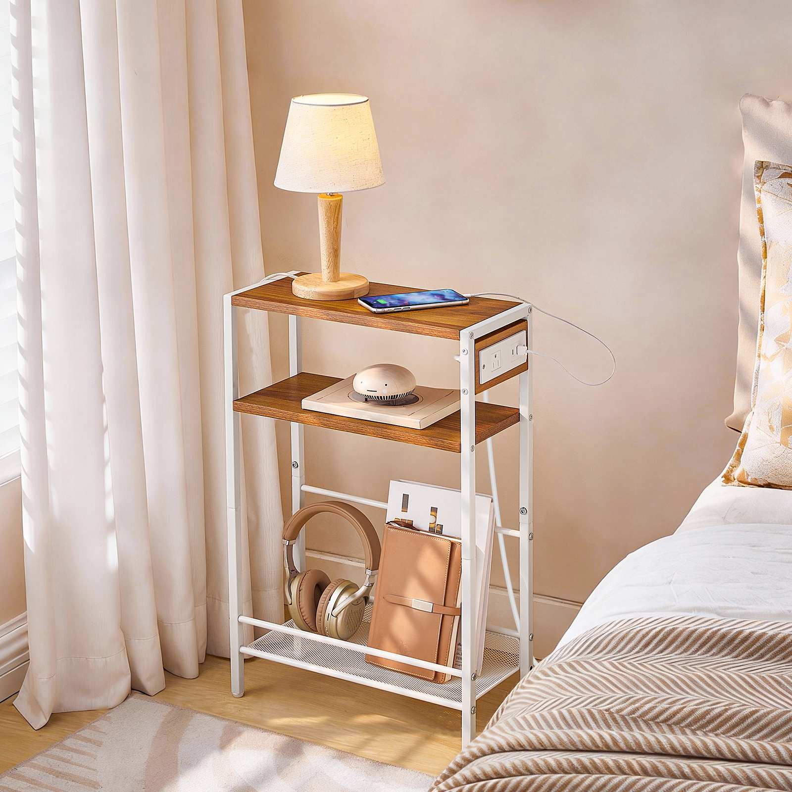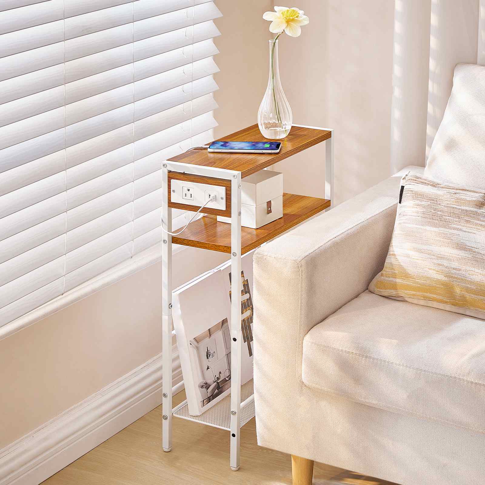 Integrated Built-in Charging Hub: The height-adjustable side table is equipped with an integrated charging station, featuring 1 AC power outlet, 1 USB port, and 1 Type-C port. This configuration effectively meets the charging needs of electronic devices such as smartphones, tablets, and other portable gadgets, creating a functional integrated space for work and leisure.