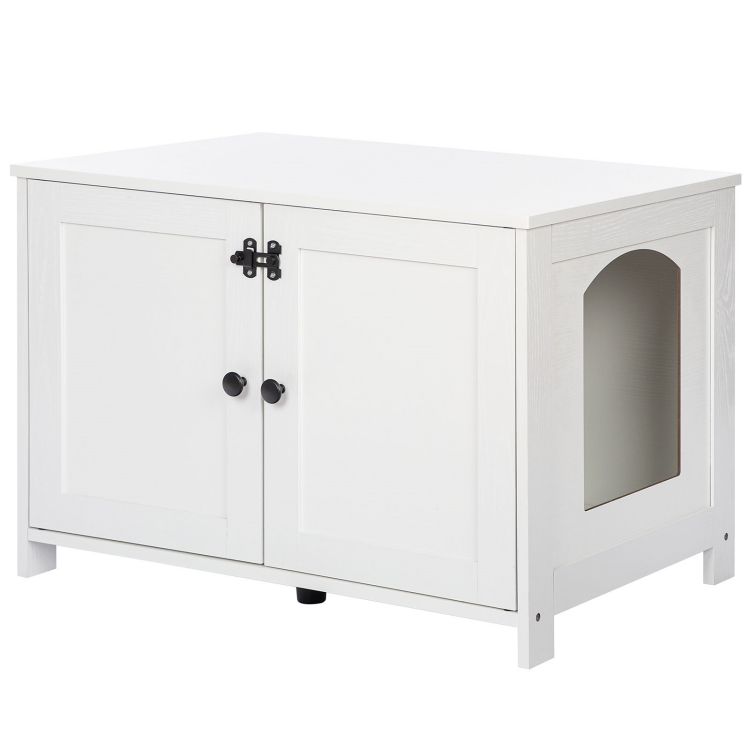 - Easier Cat Care: Double cabinet doors and lock on the side of the litter box enclosed furniture not only allows you to scoop the litter daily and store cat food more conveniently; it also is easier to get the litter box and mat out