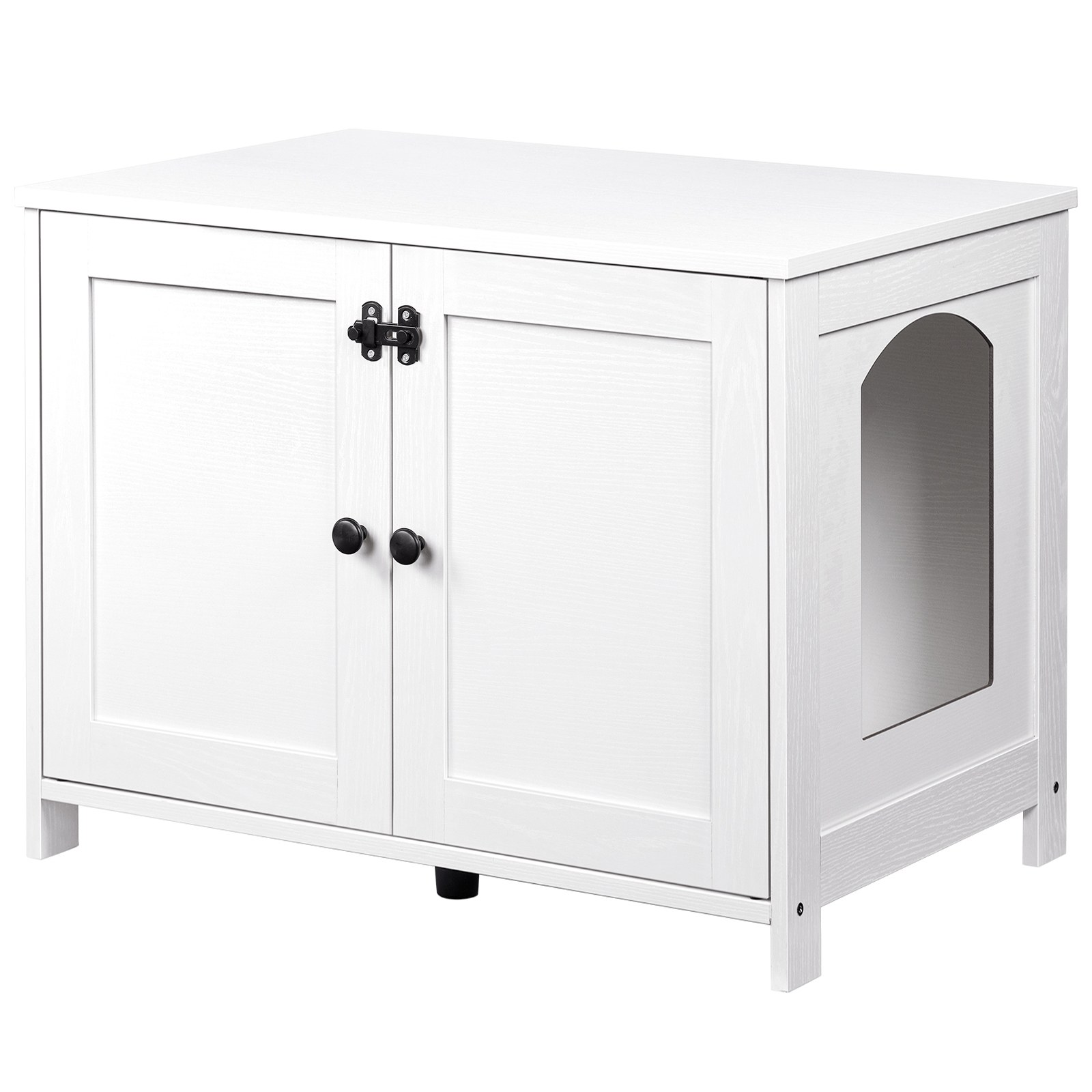 Elegant handle and double cabinet not only allows you to scoop the litter daily and store cat food more conveniently; it also is easier to get the litter box and mat out.