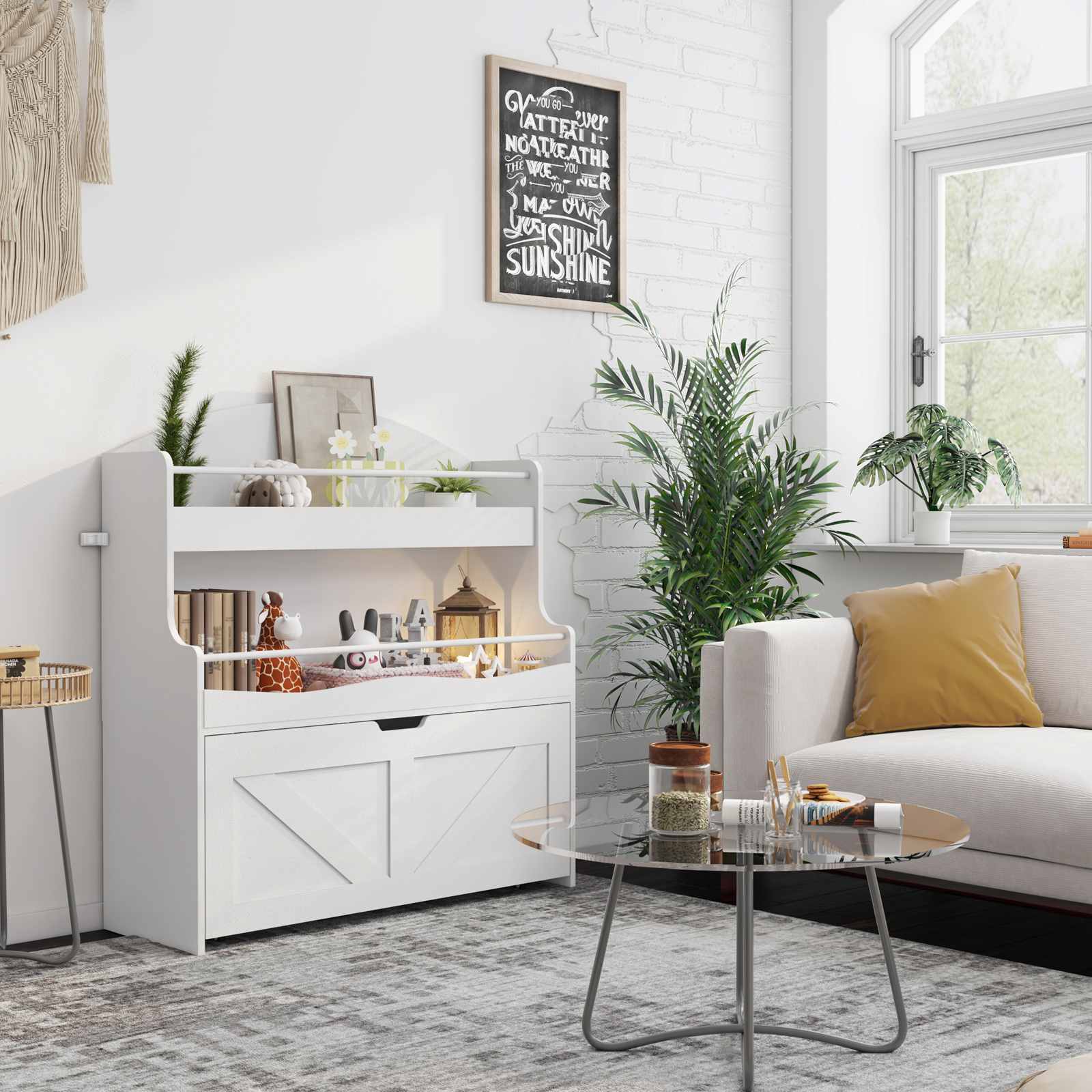 Durable Construction: This multi-functional toy storage is made of high-quality particleboard and MDF, with a stable structure and an anti-tip device to prevent tipping. It provides a safe and reliable storage solution for children, accompanying their growth.