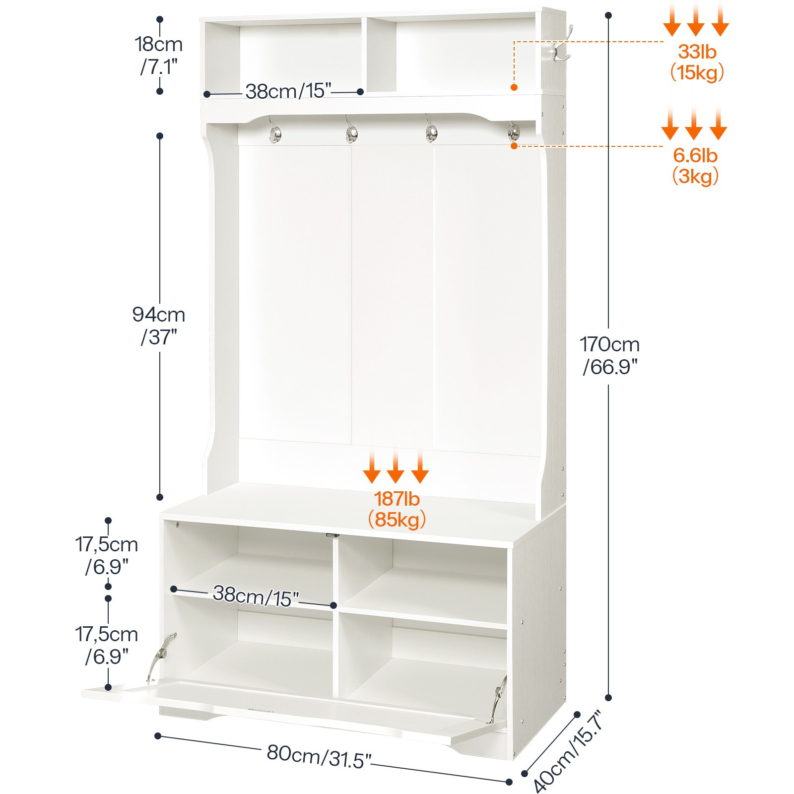 | Load Capacity | Max. Static Load Capacity of Top: Shoe Bench: 187 lb; Each Hook: 6.6 lb |