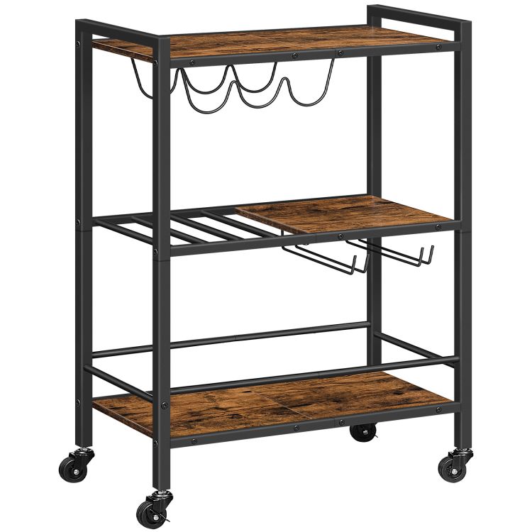 - Carrinho de barra multifuncional: Tamanho do carrinho do bar do vinho: 23.6'' l x 12,8''w x 33.9''h. com racks de três camadas, rodas móveis, prateleiras para vinhos e porta-copos fornecem um poderoso espaço de armazenamento, e também pode ser usado como rack de cozinha para armazenar especiarias, pratos e frutas