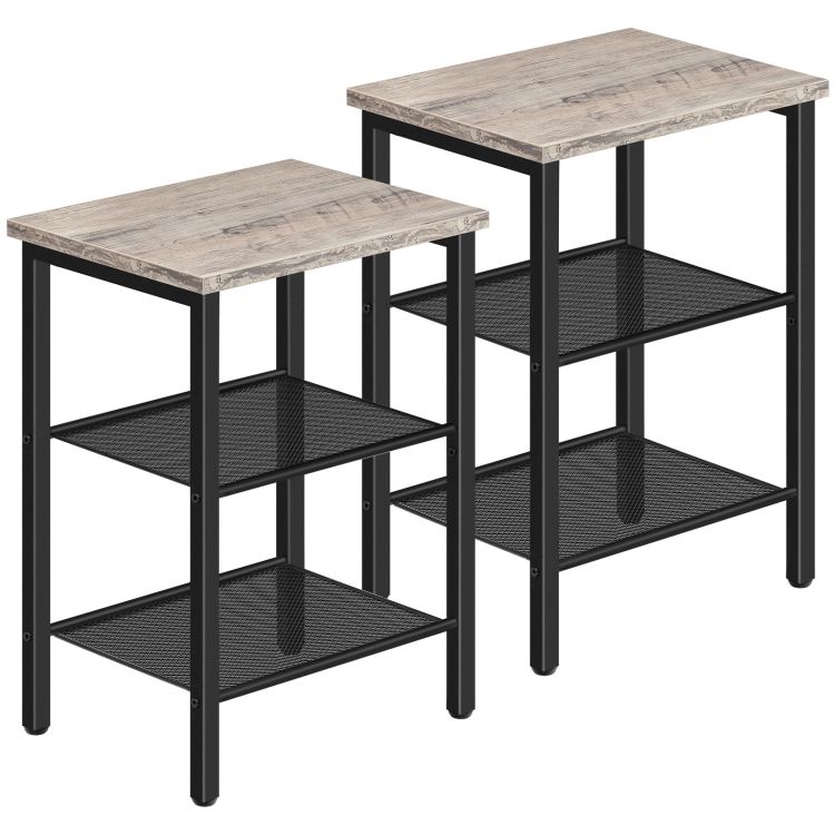mesa final, Terras de cabeceiras 2, 3-mesa lateral de camada com prateleiras de malha, Tabela final industrial para pequeno espaço na sala de estar, Quarto e varanda, estrutura de metal estável, Greige e Black