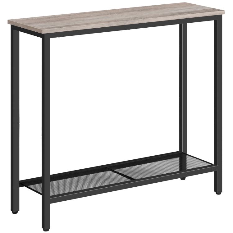 mesa console, mesa de console fina para corredor, Tabela de entrada com 2 prateleiras, mesa de exibição industrial, mesa de sofá fina para sala de estar, quarto, cinza e preto bg74xg01