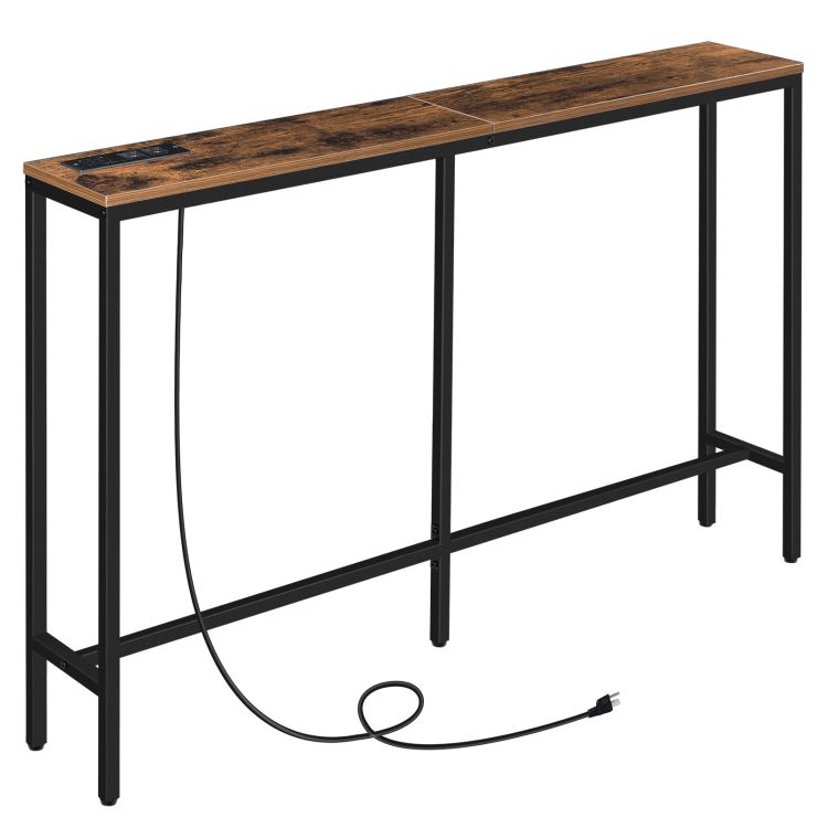 Mesa de console com tomada elétrica, 47.2" Mesa de sofá estreita, Mesa de entrada industrial com portas USB, Atrás da mesa do sofá para entrada, Corredor, Hall de entrada, Sala de estar, Quarto