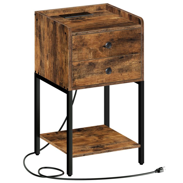 - bring in the industrial style: uma fusão perfeita de madeira projetada e estrutura de metal resistente! the nightstand with charging station, drawers and shelves gives you plenty of storage space. its rustic style can be paired with any furniture in your home. this end table is both a perfect decoration and a practical storage space!