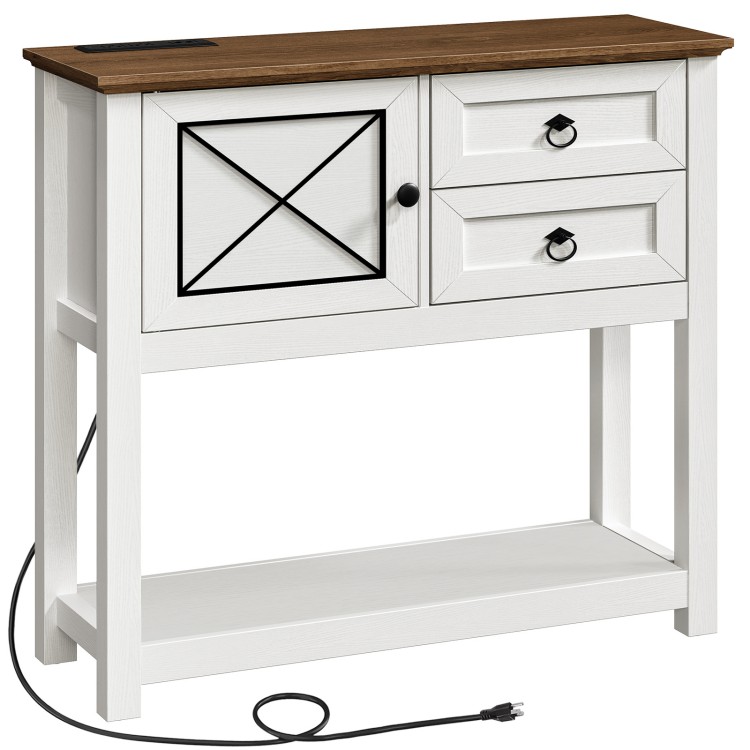 Консольный стол фермы с 2 Ящики и шкаф, Диван-столик с зарядной станцией, Деревенский стол вступительного пути с хранением, для прихожей, Коридор, Гостиная, Диван, Белый и