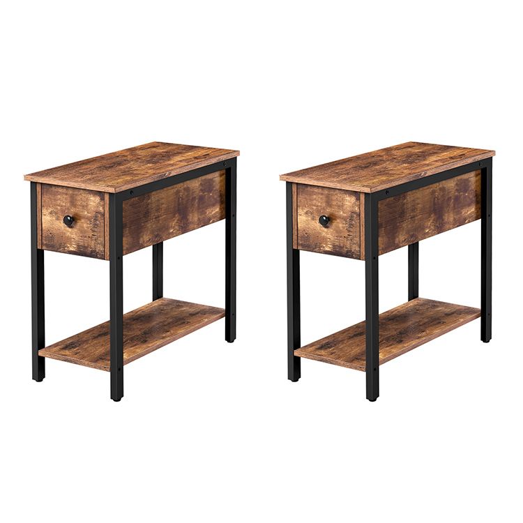 боковой стол, 2-Стол дивана на конец уровня с ящиком, узкая тумбочка для небольших помещений, стабильное и прочное строительство, Деревянный вид акцент мебель с металлической рамой, деревенский коричневый