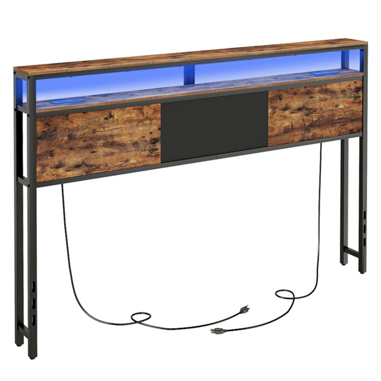 изголовье королевского размера, светодиодная головная доска 2 полки для хранения, Стойка для хранения с 2 торговые точки и 4 USB -порты, регулируемая высота, прочный и стабильный, Легкая сборка, деревенский коричневый и черный bf23udbh01