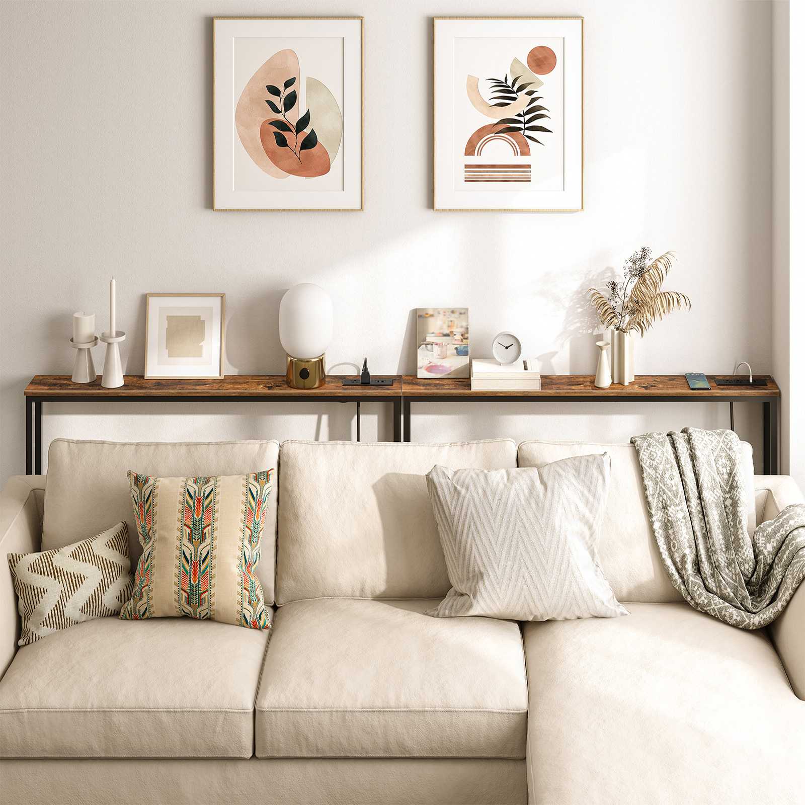 Console Table with Integrated Charging Station: This narrow console table is equipped with 2 розетки переменного тока, 2 USB-порты и шнур питания длиной 150 см.. It fulfills all daily charging needs, being suitable for charging mobile phones, ноутбуки, настольные лампы, планшеты и другие электронные устройства.