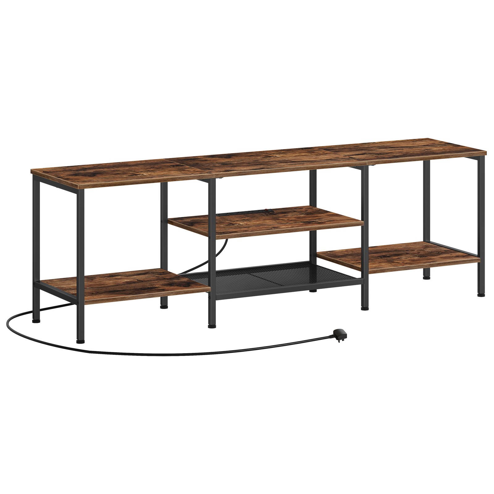 160cm TV Stand Unit, Industrial Media Entertainment Center with Power Outlets and Open Storage Shelves, Рустик Браун & Black TV Cabinet for Living Room and Bedroom