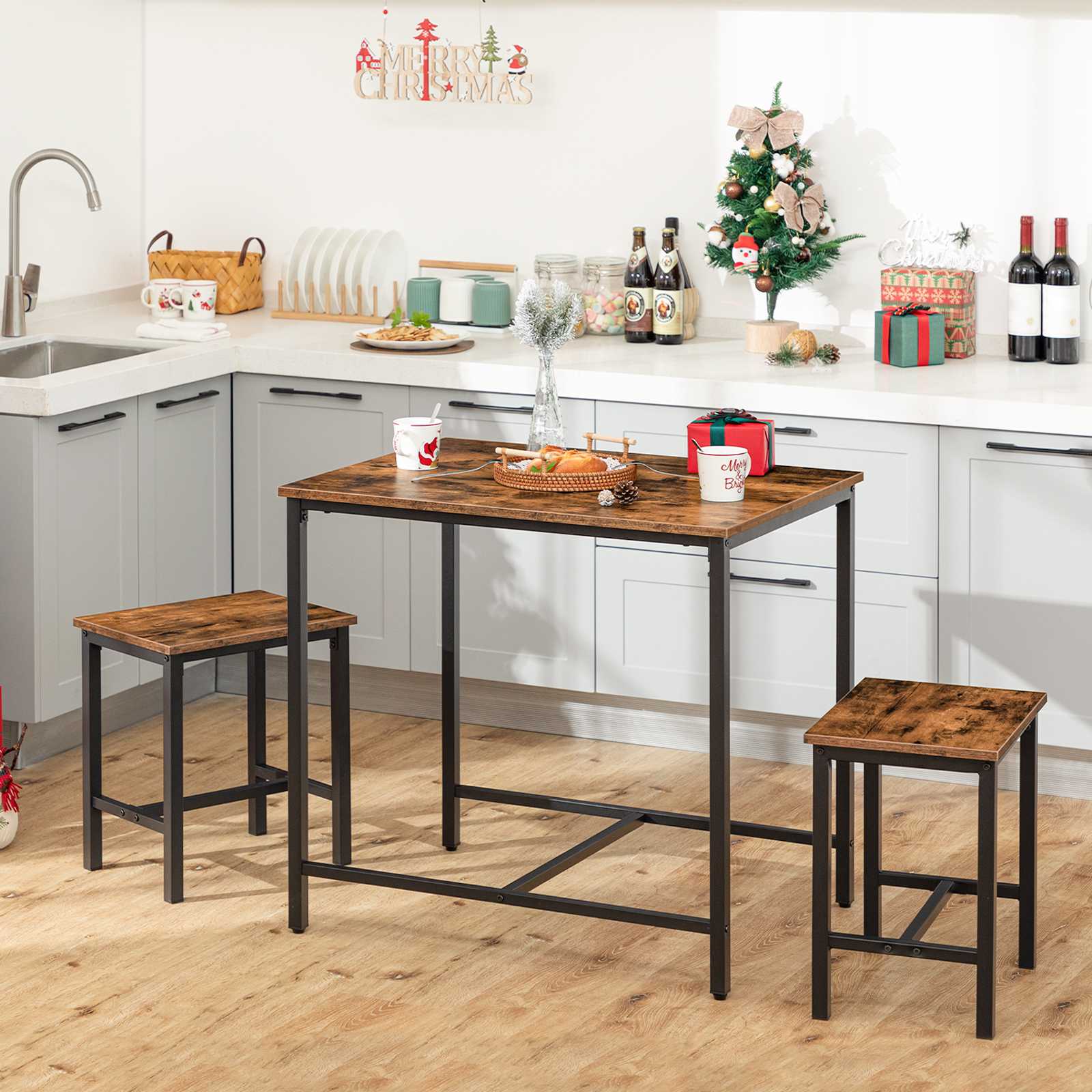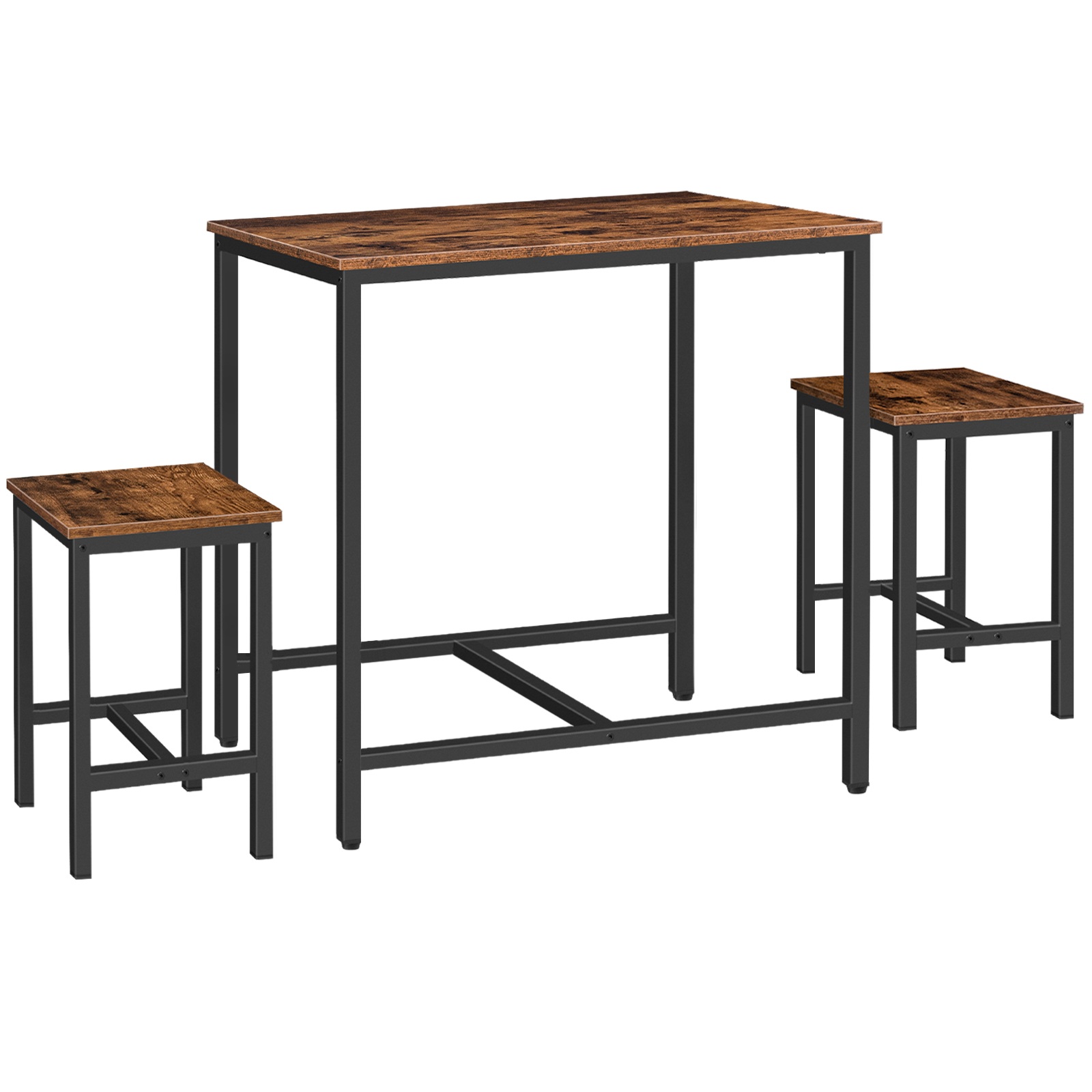 3-Набор столов для завтрака, Индастриал Рустик Коричневый & Черный обеденный стол со табуретками, Подходит для кухни, Гостиная и вечеринка