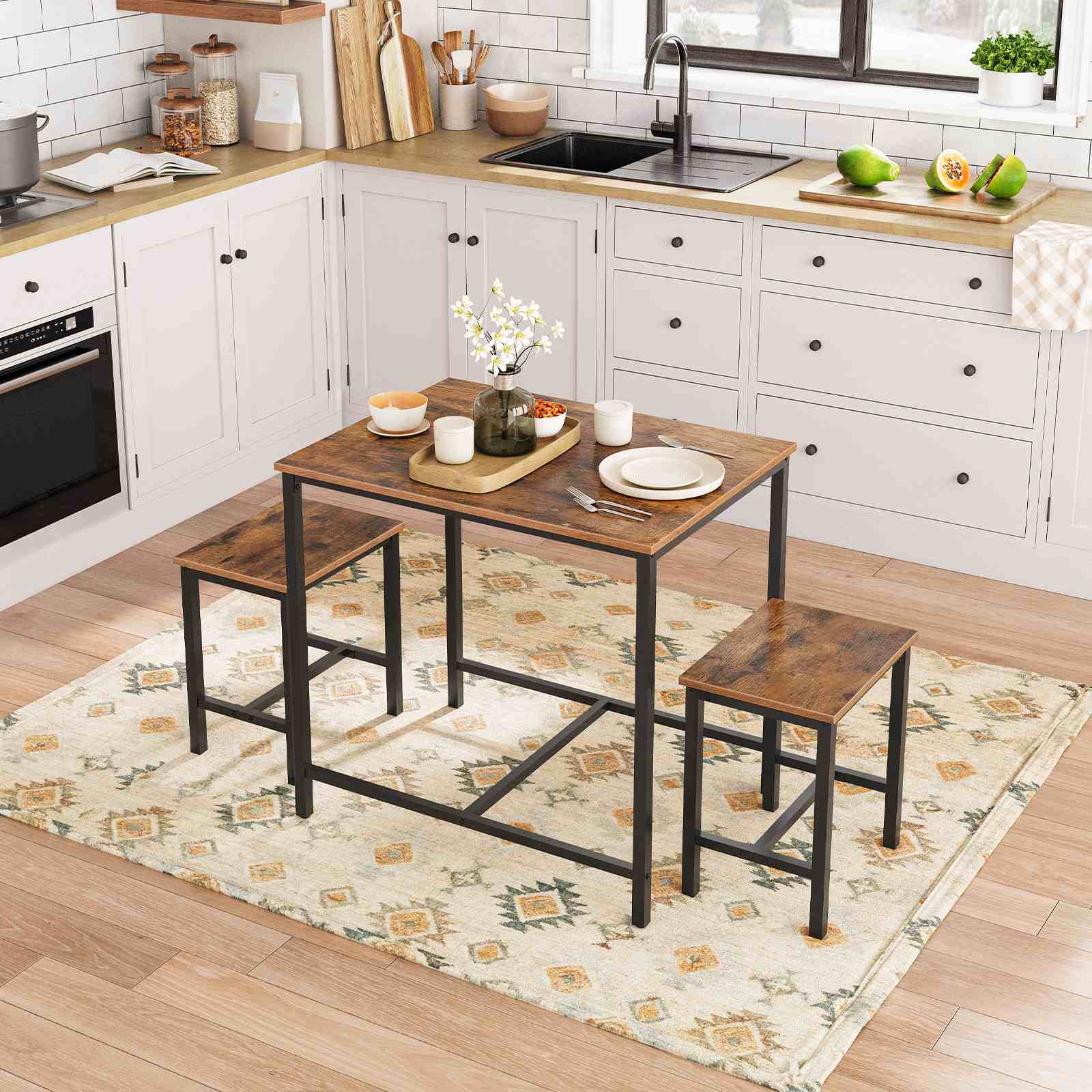 Elegant Farmhouse & Industrial Integration: This 3-piece dining table set combines industrial aesthetics with modern design elements, creating a comfortable and refined dining environment for home use, ideal for family meals and daily dining occasions.